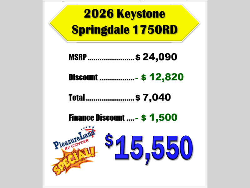 New 2026 Keystone RV Springdale Mini 1750RD Travel Trailer