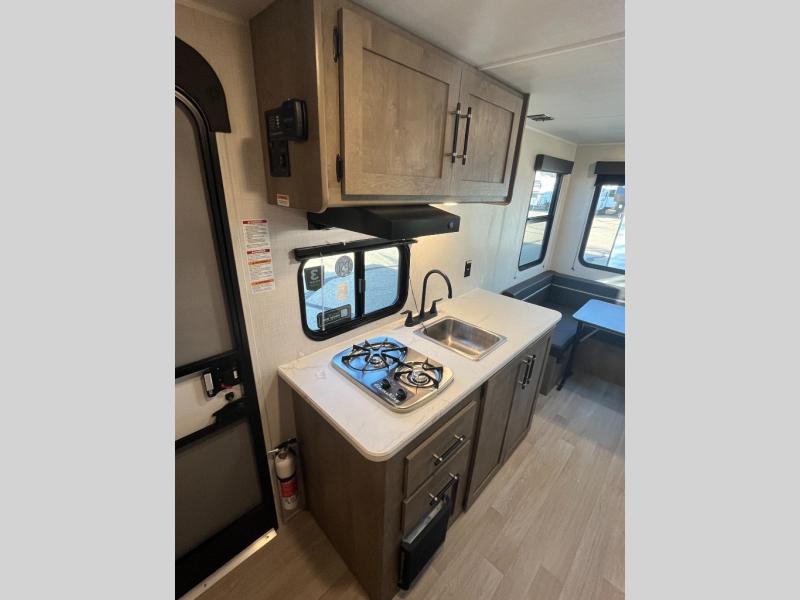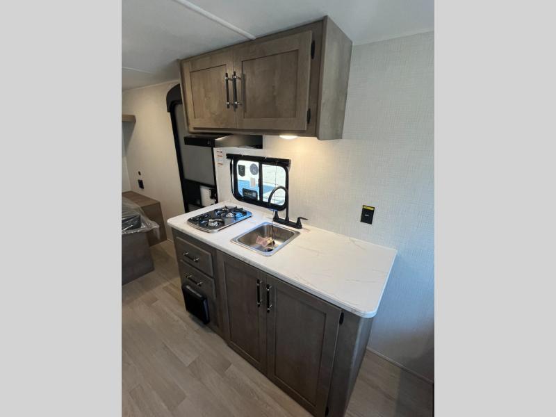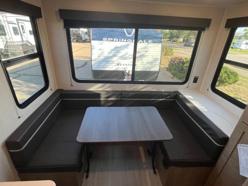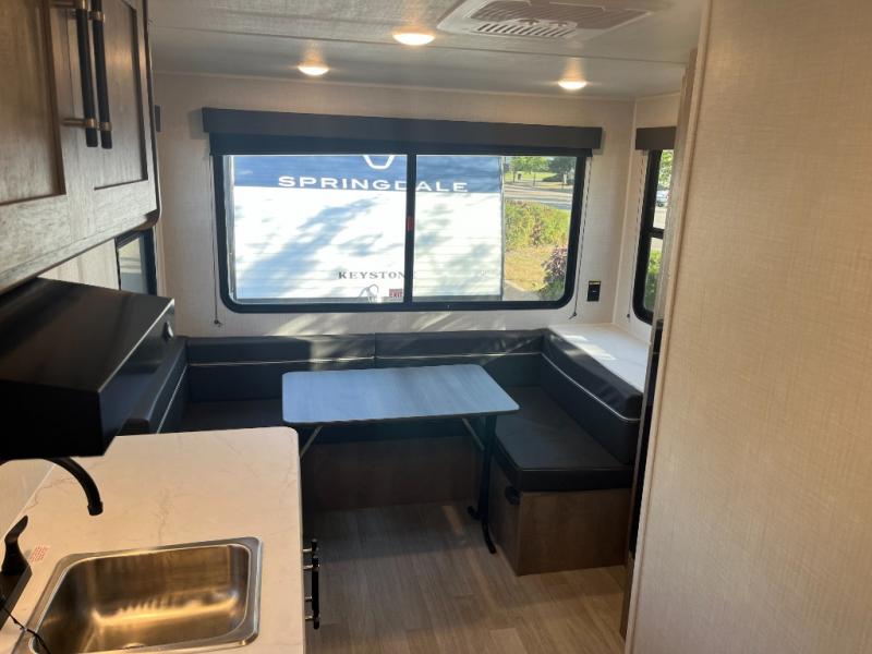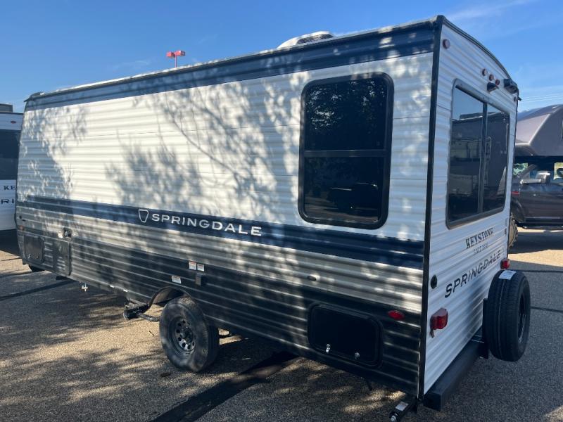 With any Springdale Mini travel trailer by Keystone, you will enjoy lightweight towing thanks to their single-axle! The AlphaPly TPO roof membrane is ultra durable, and the power awning will provide protection from the sun as you relax in your camp chairs outside. Each model includes blackout night shades, LED lighting, plus many more interior comforts. There is also a roof A/C and 20K BTU furnace to keep you comfortable, plus a tankless water heater for endless hot showers!