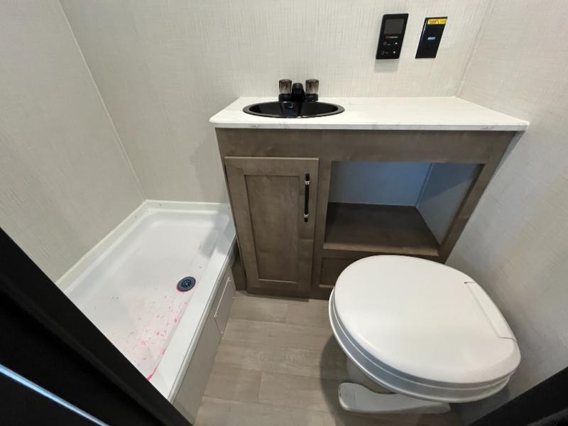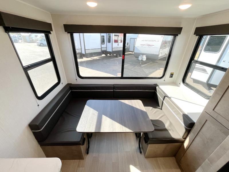 You will find lots of storage inside and outside this trailer allowing you to bring along everything you need for a great camping trip! Along the exterior there is a pass-thru compartment for your outdoor gear and a 10' power awning giving you a covered outdoor living area to enjoy. The cook will have a two burner gas range to make meals, and everyone can dine around the U-shaped dinette. There is a full bathroom to get cleaned up in before bedtime, and a queen bed to fall asleep quickly so you can have fun again tomorrow.