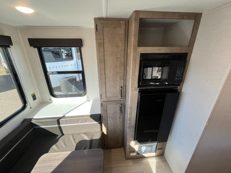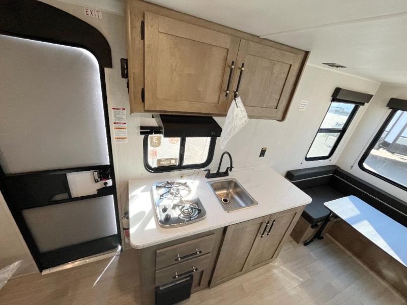 With any Springdale Mini travel trailer by Keystone, you will enjoy lightweight towing thanks to their single-axle! The AlphaPly TPO roof membrane is ultra durable, and the power awning will provide protection from the sun as you relax in your camp chairs outside. Each model includes blackout night shades, LED lighting, plus many more interior comforts. There is also a roof A/C and 20K BTU furnace to keep you comfortable, plus a tankless water heater for endless hot showers!
