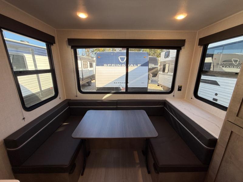With any Springdale Mini travel trailer by Keystone, you will enjoy lightweight towing thanks to their single-axle! The AlphaPly TPO roof membrane is ultra durable, and the power awning will provide protection from the sun as you relax in your camp chairs outside. Each model includes blackout night shades, LED lighting, plus many more interior comforts. There is also a roof A/C and 20K BTU furnace to keep you comfortable, plus a tankless water heater for endless hot showers!