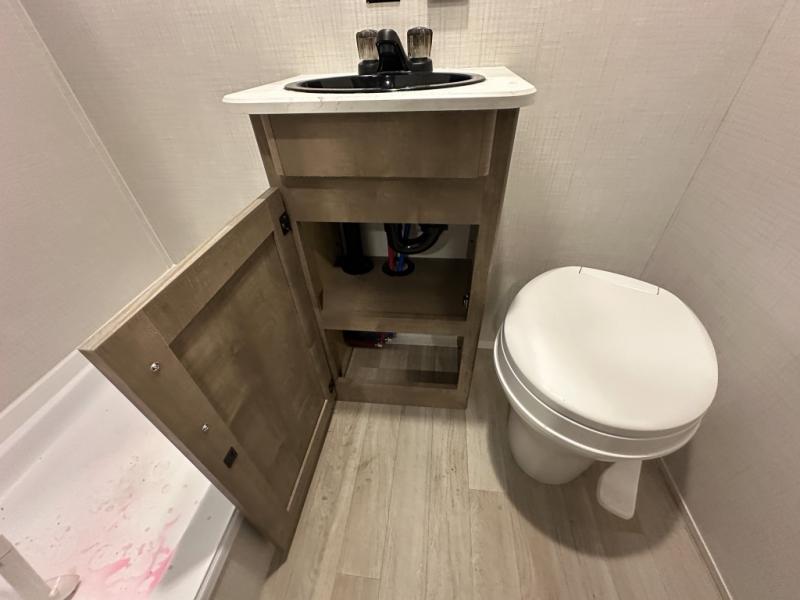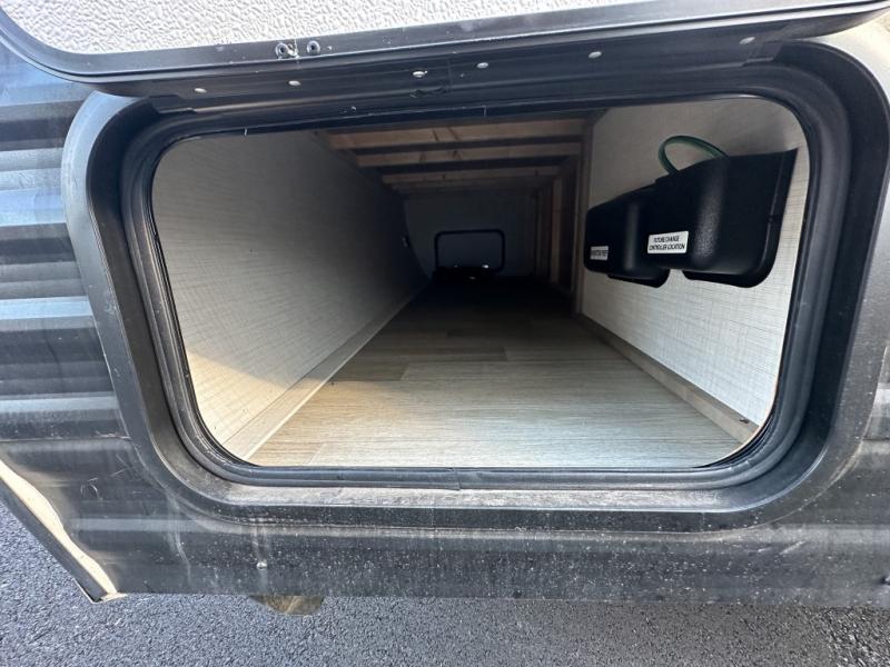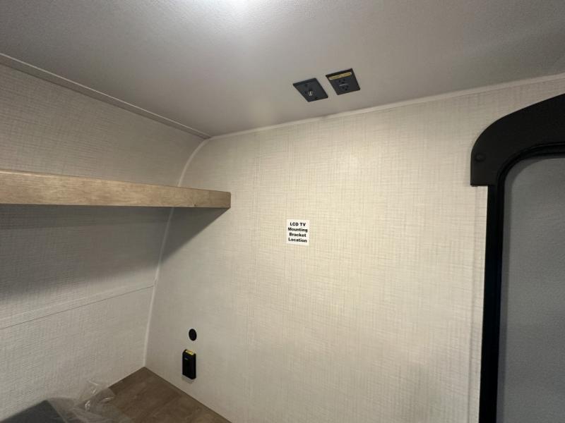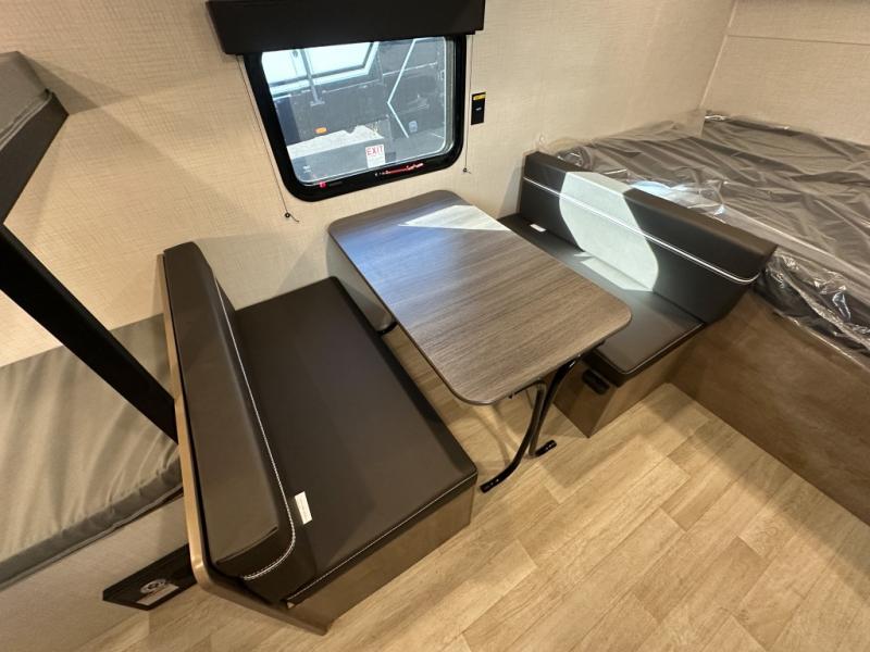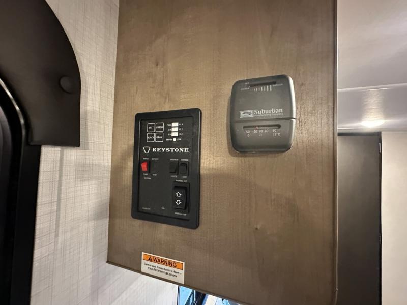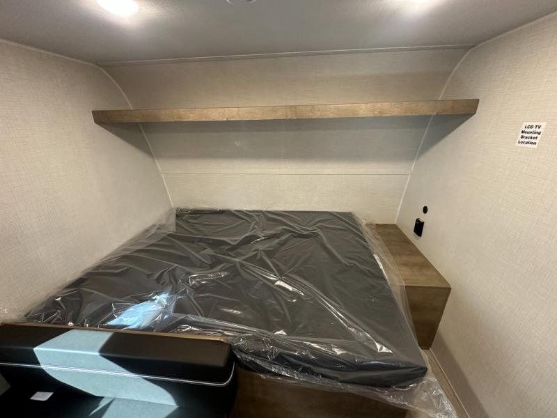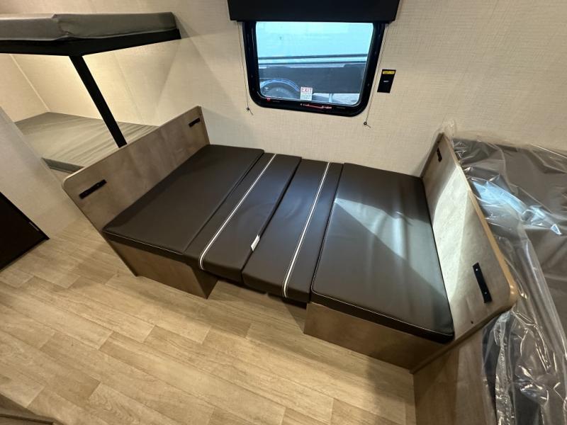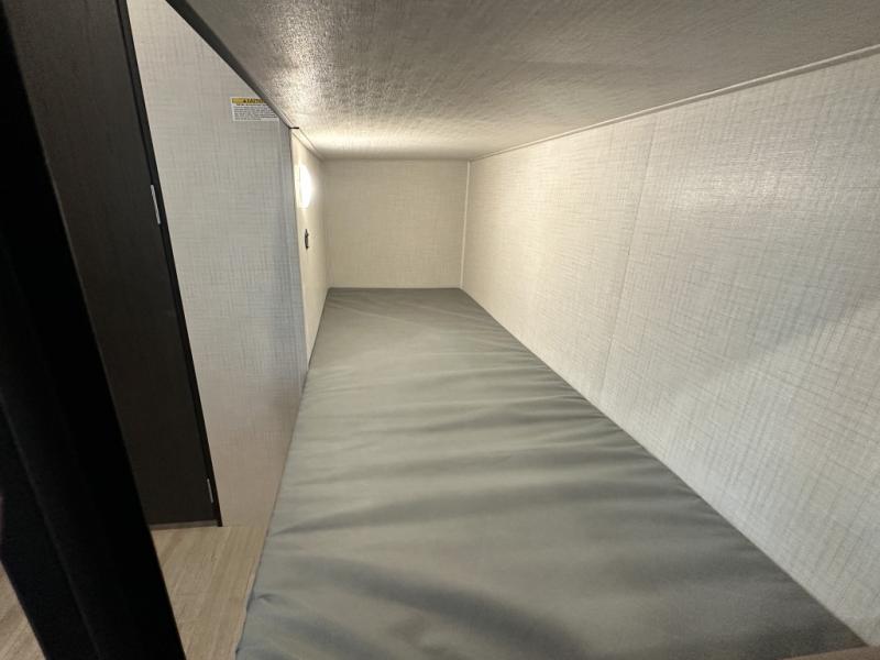 Get ready for outdoor fun with your favorite people when you have this trailer in tow! Once at your campsite, you can easily setup the 10' power awning, grab your camping chairs from the pass-thru storage, and relax or start playing. The cook will love the galley kitchen with the two burner cooktop, plus a refrigerator for cold items. If you like, you can eat inside at the booth dinette which doubles as sleeping space, and of course the kids will love the bunk beds next to the full bathroom. And you will sleep soundly on the front queen bed.