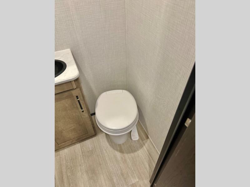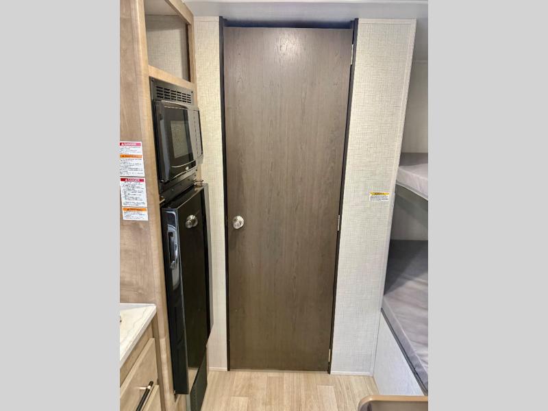 Get ready for outdoor fun with your favorite people when you have this trailer in tow! Once at your campsite, you can easily setup the 10' power awning, grab your camping chairs from the pass-thru storage, and relax or start playing. The cook will love the galley kitchen with the two burner cooktop, plus a refrigerator for cold items. If you like, you can eat inside at the booth dinette which doubles as sleeping space, and of course the kids will love the bunk beds next to the full bathroom. And you will sleep soundly on the front queen bed.