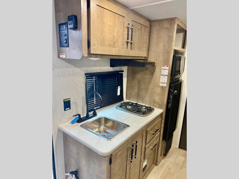 With any Springdale Mini travel trailer by Keystone, you will enjoy lightweight towing thanks to their single-axle! The AlphaPly TPO roof membrane is ultra durable, and the power awning will provide protection from the sun as you relax in your camp chairs outside. Each model includes blackout night shades, LED lighting, plus many more interior comforts. There is also a roof A/C and 20K BTU furnace to keep you comfortable, plus a tankless water heater for endless hot showers!
