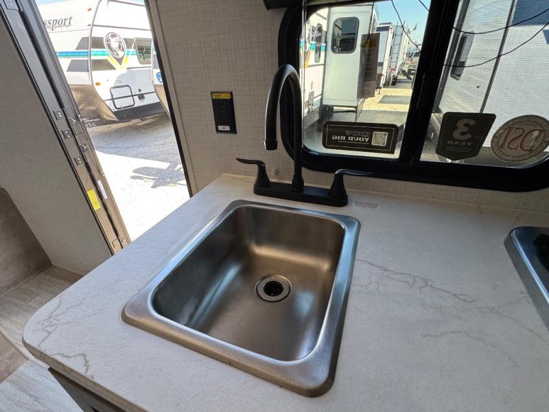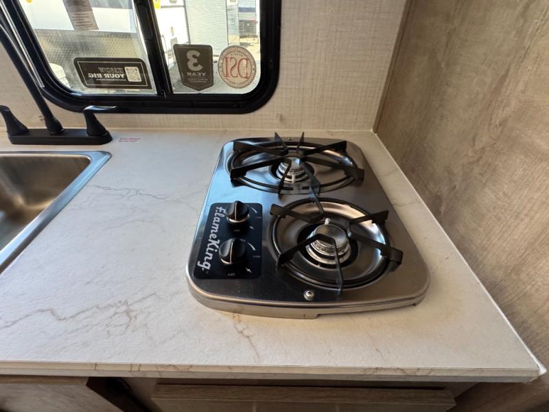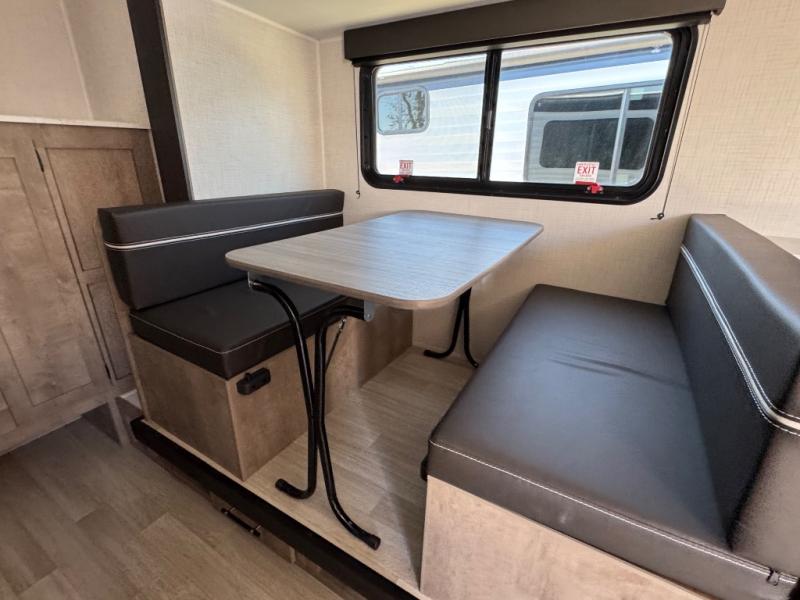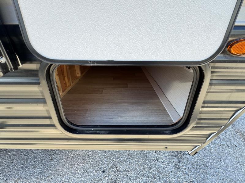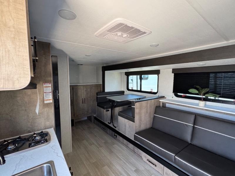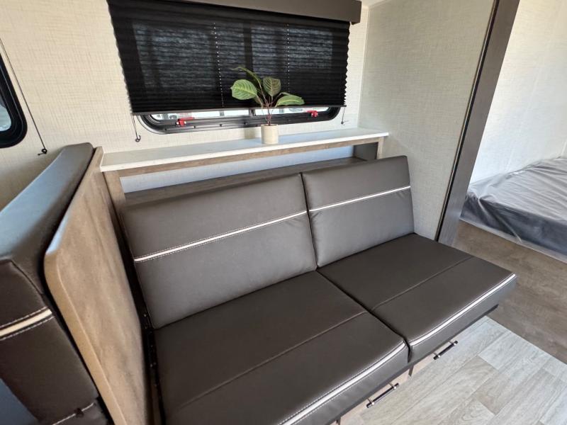 When you want to explore the outdoors and relax indoors, this trailer will provide the comforts, conveniences and many of the wants you will need to do both! The interior is spacious with the large slide out which includes a booth dinette and sofa, both with storage drawers. And the furniture doubles as sleeping space when you have overnight guests. There is a pantry and a closet next to the full bathroom which is handy, and the galley kitchen offers a 7.7 cu. ft. 12V refrigerator to store the cold items. You will also sleep soundly each night on the front queen bed. The exterior offers a 15' power awning plus a pass-thru compartment for your outdoor camping chairs, tables, charcoal and more.