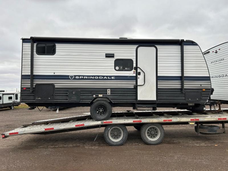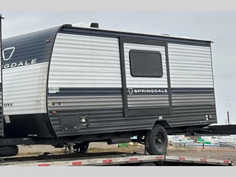 With any Springdale Mini travel trailer by Keystone, you will enjoy lightweight towing thanks to their single axle! The XL tinted safety glass windows are ultra durable, and the power awning will provide protection from the sun as you relax in your camp chairs outside. Each model includes blackout night shades, LED lighting, plus many more interior comforts. There is also a 20K BTU furnace to keep you comfortable, plus a tankless water heater for endless hot showers!