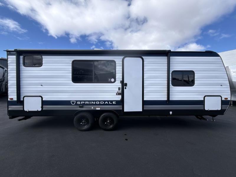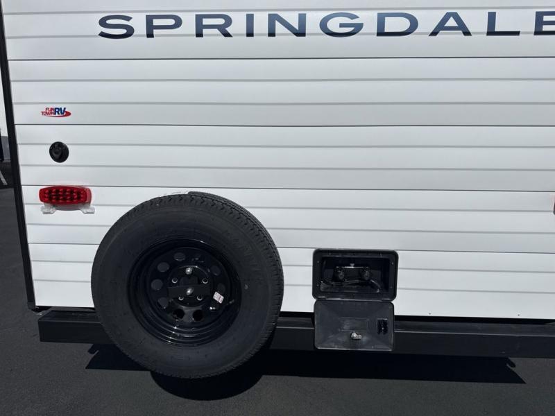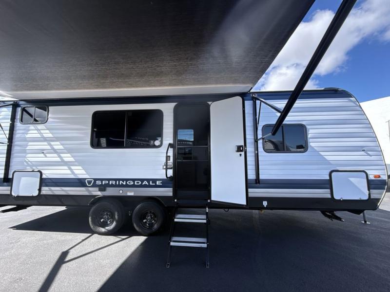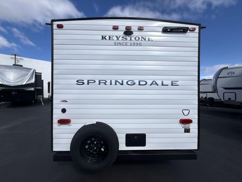 With any Springdale Mini travel trailer by Keystone, you will enjoy lightweight towing thanks to their single-axle! The AlphaPly TPO roof membrane is ultra durable, and the power awning will provide protection from the sun as you relax in your camp chairs outside. Each model includes blackout night shades, LED lighting, plus many more interior comforts. There is also a roof A/C and 20K BTU furnace to keep you comfortable, plus a tankless water heater for endless hot showers!