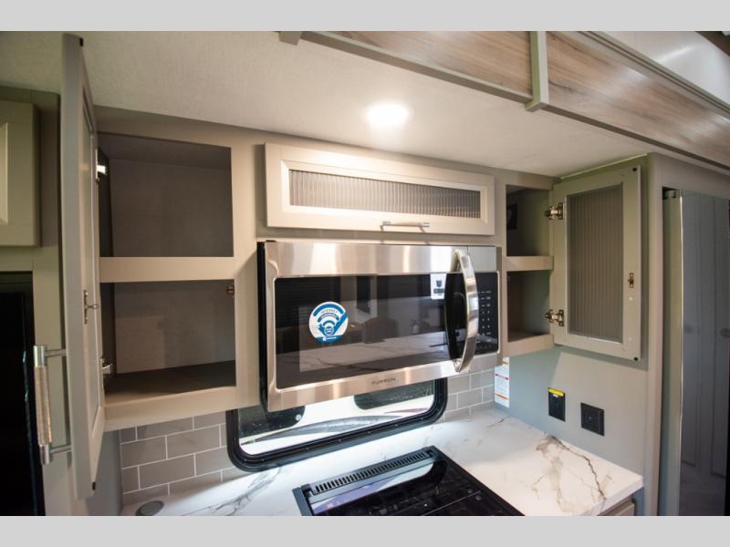 The Sprinter fifth wheels by Keystone feature spacious living areas, plenty of storage, and outstanding towability. Each unit is constructed with 2" aluminum framed and laminated sidewalls, a fully walkable roof, and dual layer insulation to help extend your camping season. The heated pass-through storage includes lockable slam latch baggage doors so you can easily pack your gear, and the one-touch 4-point leveling system features return hookup memory to have you set up in no-time. Head inside to find Congoleum vinyl flooring, Thomas Payne luxury collection furniture, residential style seamless marbled countertops, and an upgraded bedspread to name a few comforts. The Sprinter also includes a Girard tankless on-demand water heater, a central command center, plus a 30k BTU furnace and two A/C units to ensure your comfort!