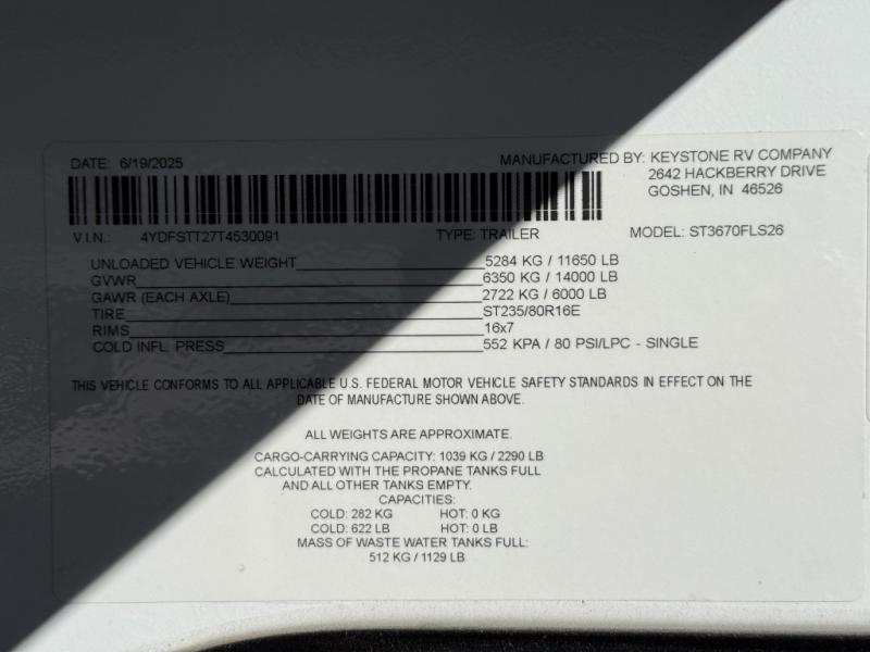 New 2026 Keystone RV Sprinter 3670FLS Fifth Wheel