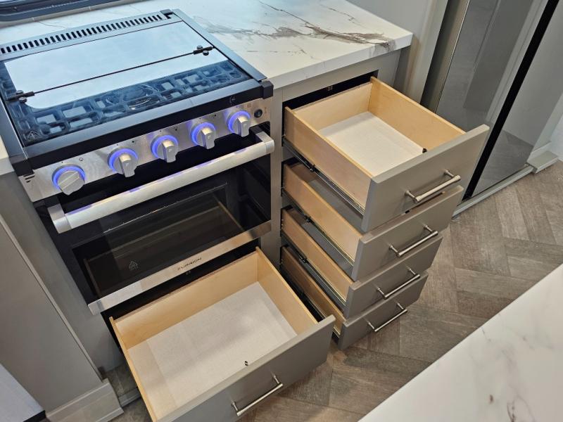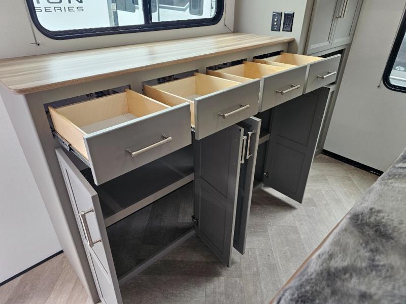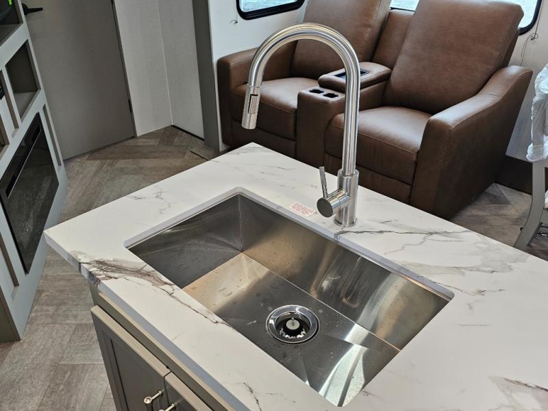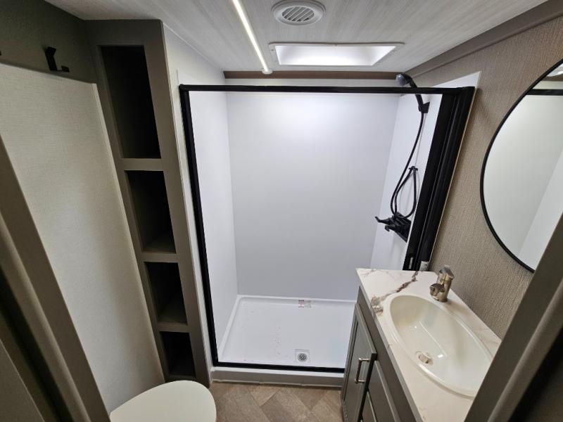 The Sprinter 3810QBS is designed with families in mind, offering a private bunkhouse, multiple sleeping arrangements, and premium residential-style comforts. With a bath and a half, dual entry doors, and luxury seating, this model makes long camping trips or weekend getaways stress-free and enjoyable.