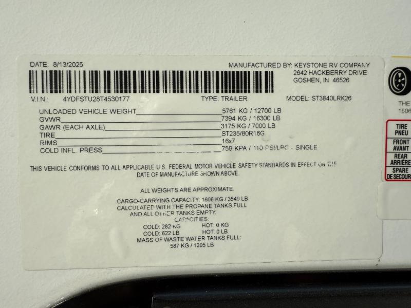 New 2026 Keystone RV Sprinter 3840LRK Fifth Wheel