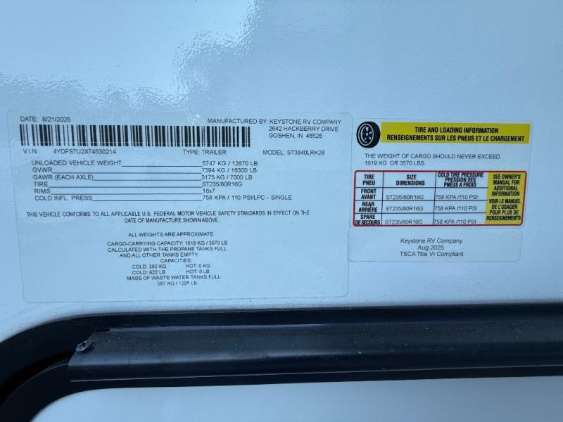 New 2026 Keystone RV Sprinter 3840LRK Fifth Wheel
