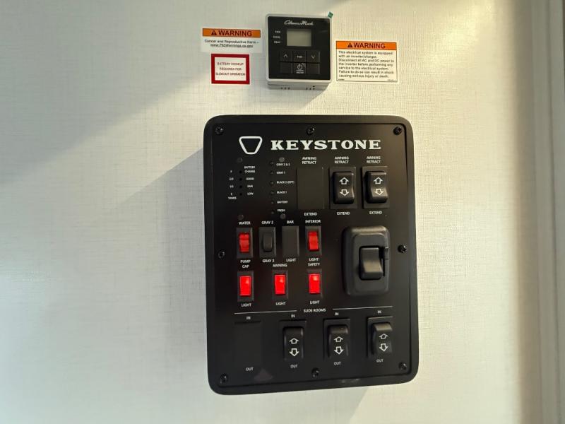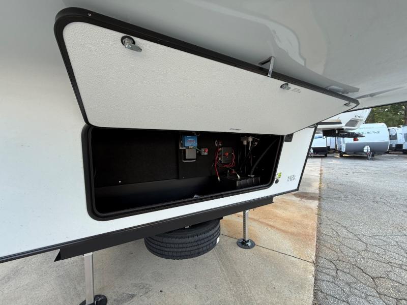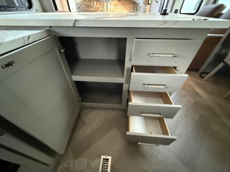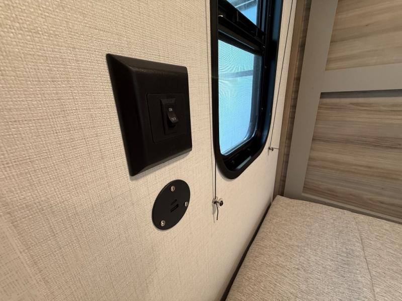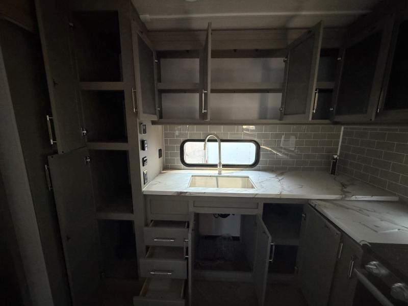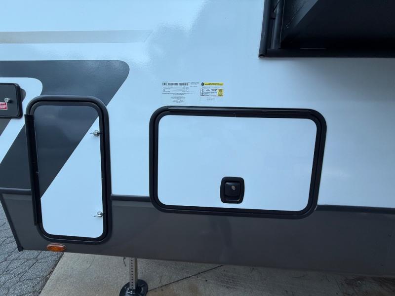 The Sprinter fifth wheels by Keystone feature spacious living areas, plenty of storage, and outstanding towability. Each unit is constructed with 2" aluminum framed and laminated sidewalls, a fully walkable roof, and dual layer insulation to help extend your camping season. The heated pass-through storage includes lockable slam latch baggage doors so you can easily pack your gear, and the one-touch 4-point leveling system features return hookup memory to have you set up in no-time. Head inside to find Congoleum vinyl flooring, Thomas Payne luxury collection furniture, residential style seamless marbled countertops, and an upgraded bedspread to name a few comforts. The Sprinter also includes a Girard tankless on-demand water heater, a central command center, plus a 30k BTU furnace and two A/C units to ensure your comfort!