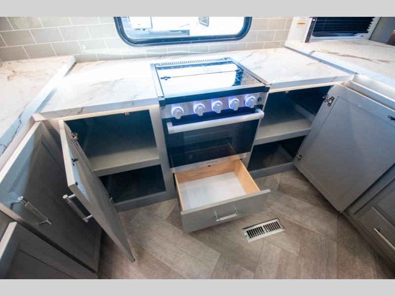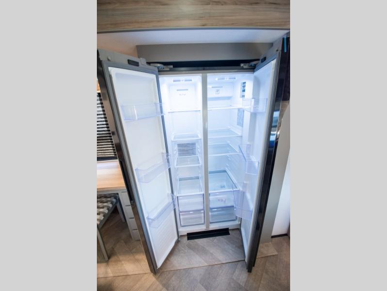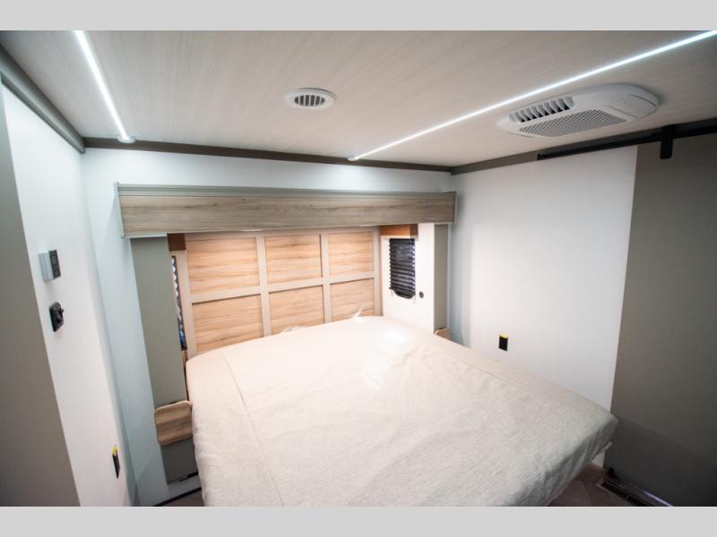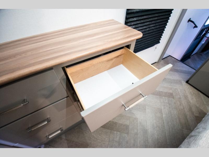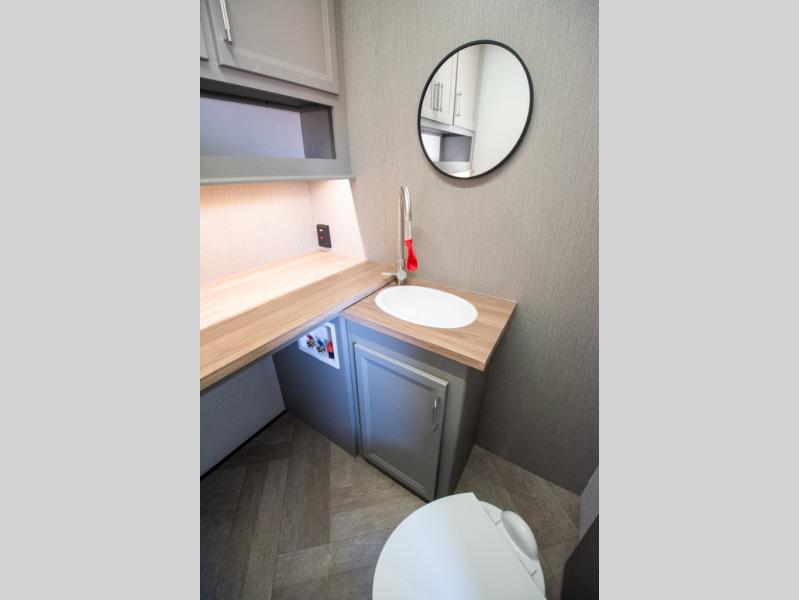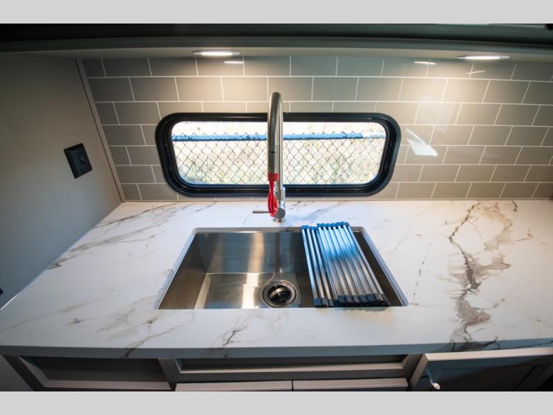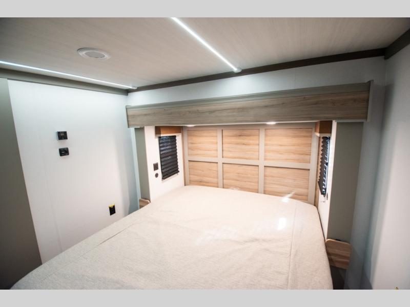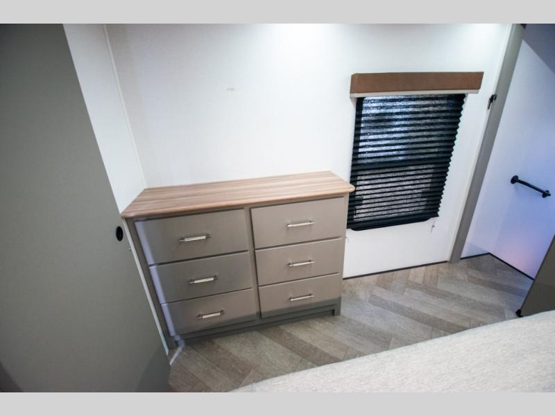 The Sprinter fifth wheels by Keystone feature spacious living areas, plenty of storage, and outstanding towability. Each unit is constructed with 2" aluminum framed and laminated sidewalls, a fully walkable roof, and dual layer insulation to help extend your camping season. The heated pass-through storage includes lockable slam latch baggage doors so you can easily pack your gear, and the one-touch 4-point leveling system features return hookup memory to have you set up in no-time. Head inside to find Congoleum vinyl flooring, Thomas Payne luxury collection furniture, residential style seamless marbled countertops, and an upgraded bedspread to name a few comforts. The Sprinter also includes a Girard tankless on-demand water heater, a central command center, plus a 30k BTU furnace and two A/C units to ensure your comfort!