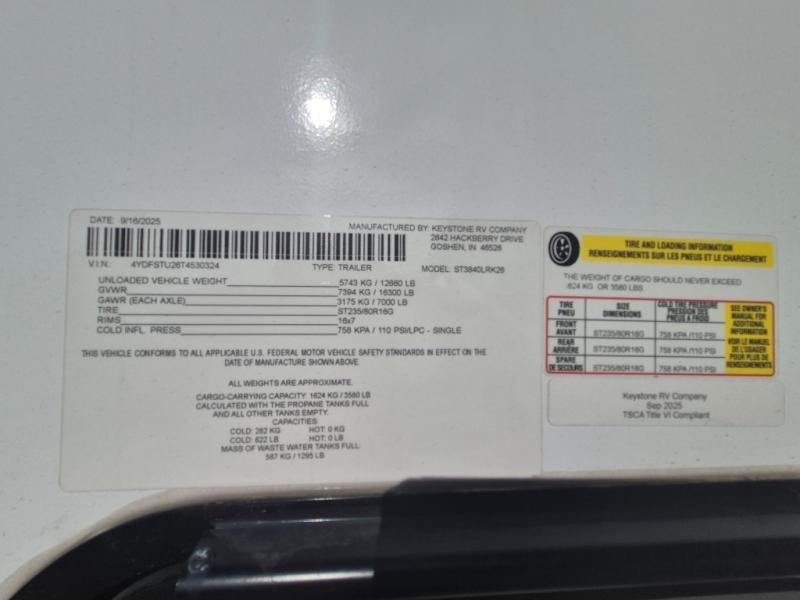 New 2026 Keystone RV Sprinter 3840LRK Fifth Wheel