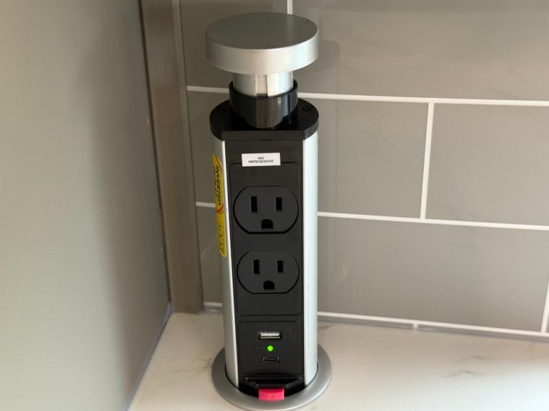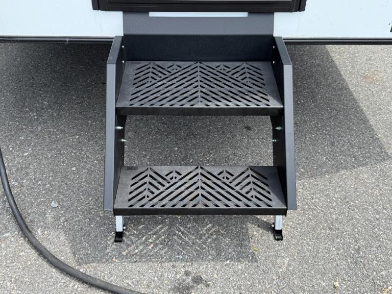 Convenience: One-touch 4-point leveling with memory, two electric awnings (10' & 17' LED-lit, friction-hinge), outside shower, 2" rear hitch receiver