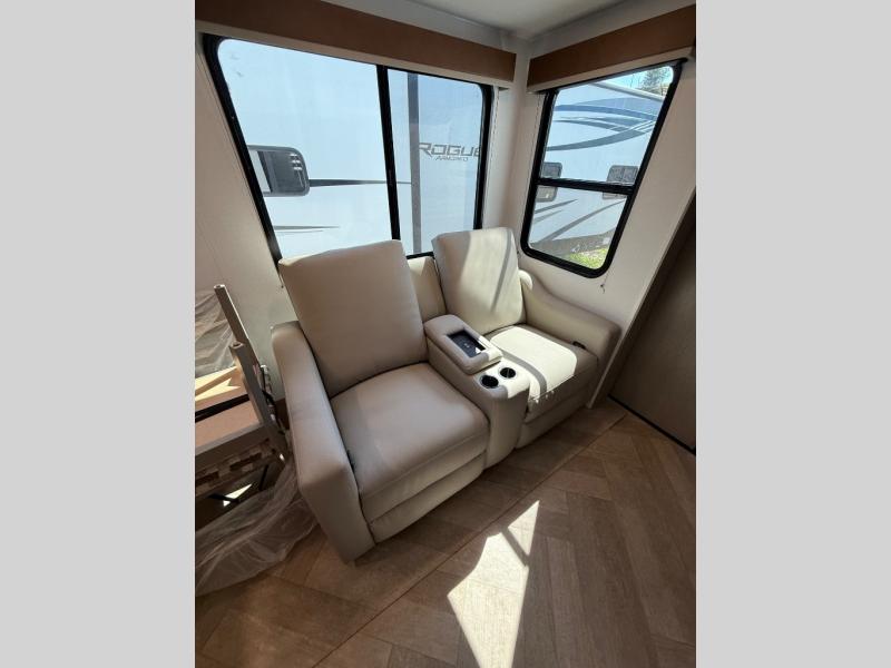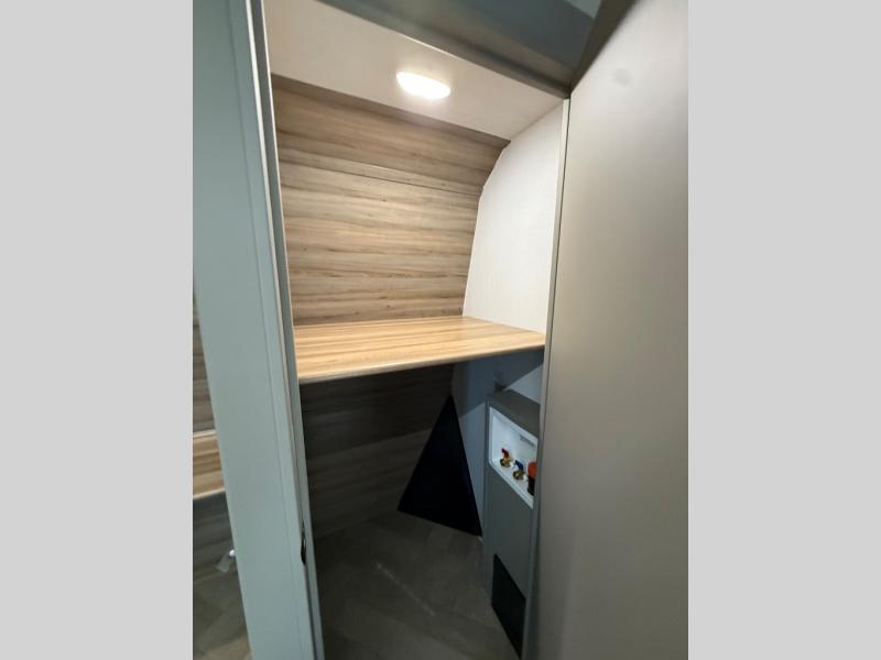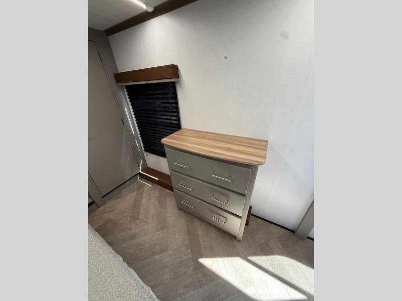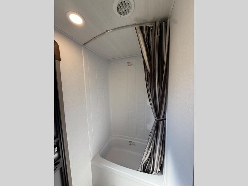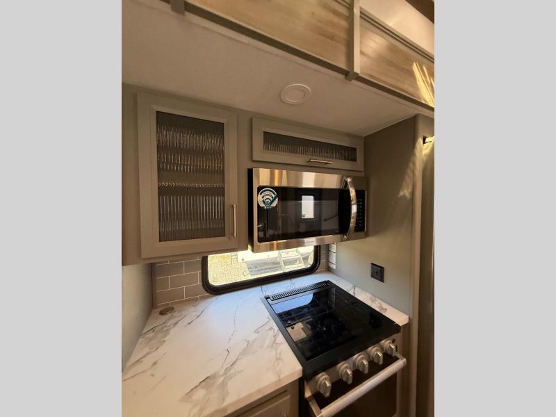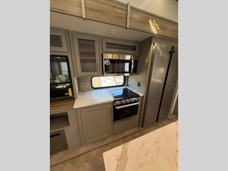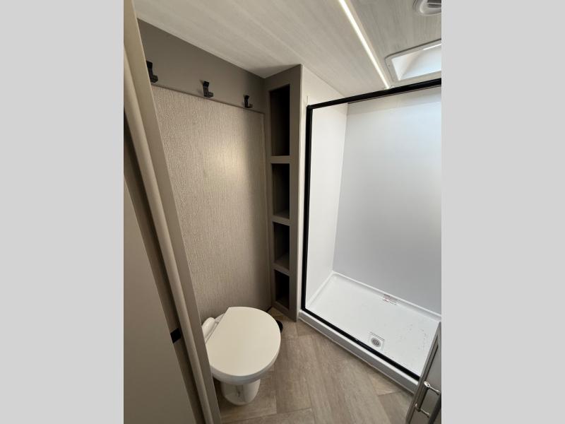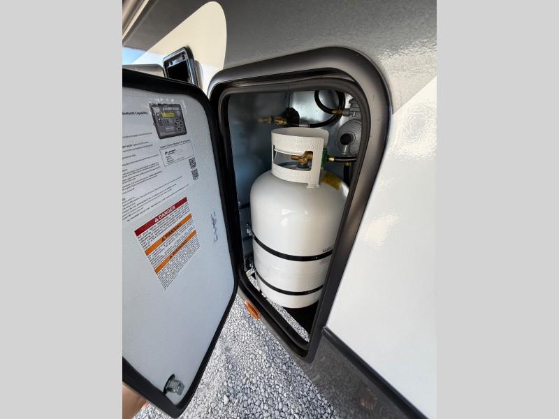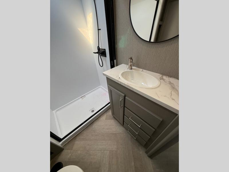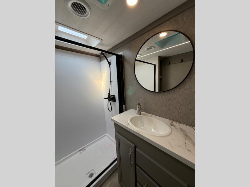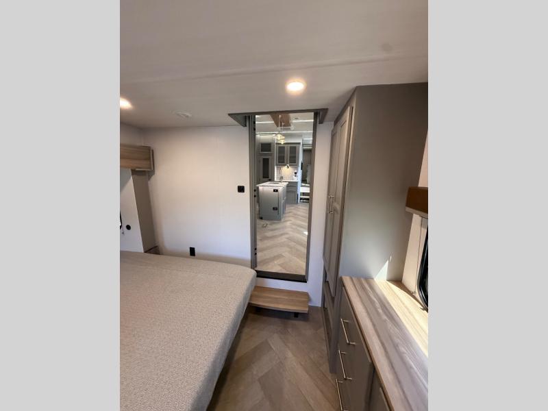 The Sprinter fifth wheels by Keystone feature spacious living areas, plenty of storage, and outstanding towability. Each unit is constructed with 2" aluminum framed and laminated sidewalls, a fully walkable roof, and dual layer insulation to help extend your camping season. The heated pass-through storage includes lockable slam latch baggage doors so you can easily pack your gear, and the one-touch 4-point leveling system features return hookup memory to have you set up in no-time. Head inside to find Congoleum vinyl flooring, Thomas Payne luxury collection furniture, residential style seamless marbled countertops, and an upgraded bedspread to name a few comforts. The Sprinter also includes a Girard tankless on-demand water heater, a central command center, plus a 30k BTU furnace and two A/C units to ensure your comfort!