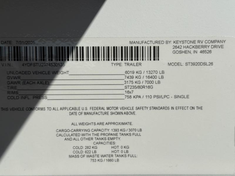 New 2026 Keystone RV Sprinter 3920DSL Fifth Wheel