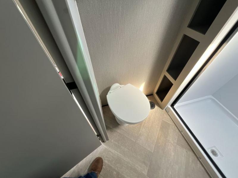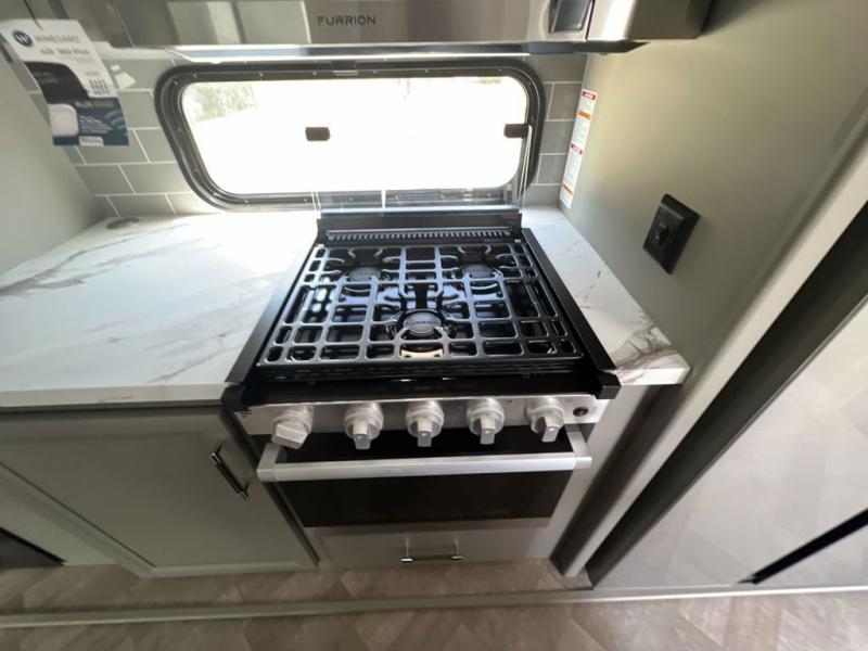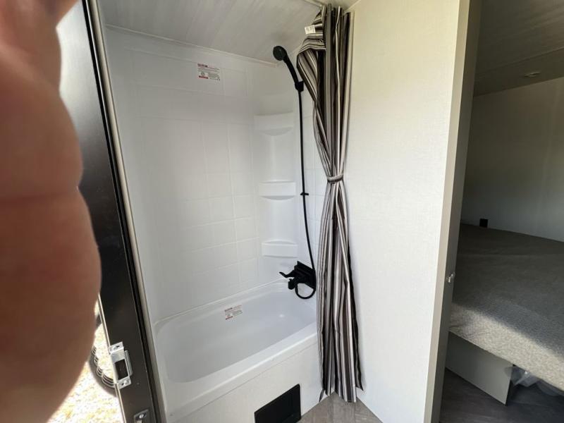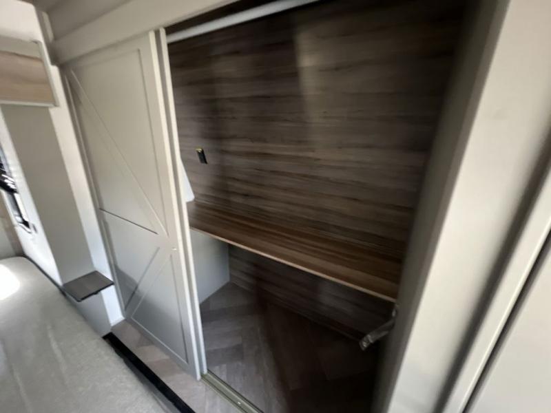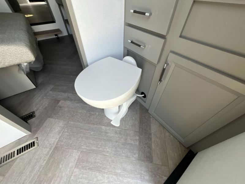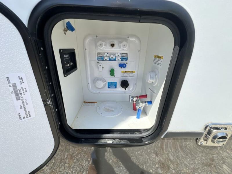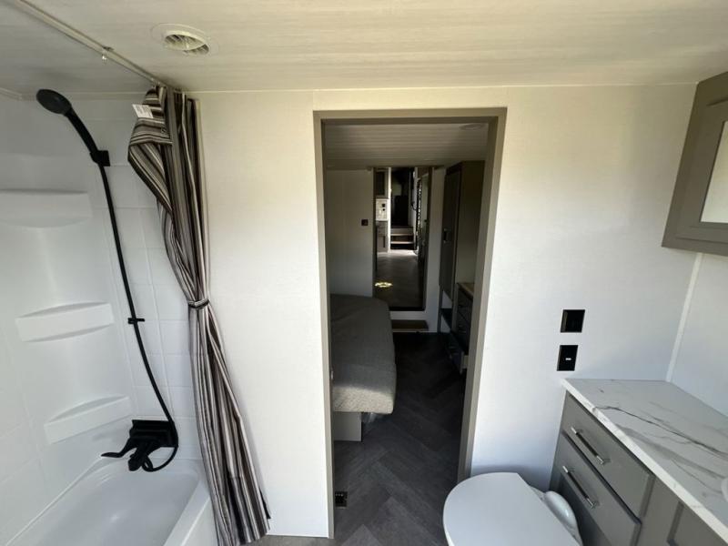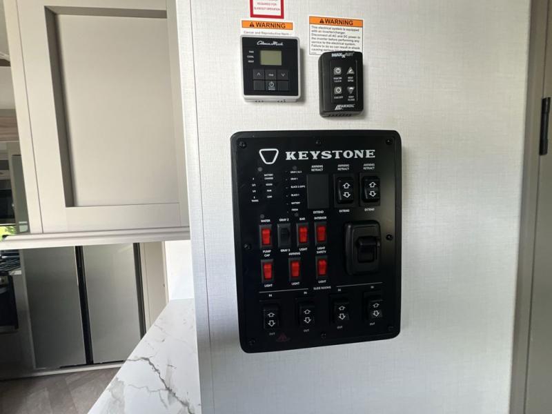 The Sprinter fifth wheels by Keystone feature spacious living areas, plenty of storage, and outstanding towability. Each unit is constructed with 2" aluminum framed and laminated sidewalls, a fully walkable roof, and dual layer insulation to help extend your camping season. The heated pass-through storage includes lockable slam latch baggage doors so you can easily pack your gear, and the one-touch 4-point leveling system features return hookup memory to have you set up in no-time. Head inside to find Congoleum vinyl flooring, Thomas Payne luxury collection furniture, residential style seamless marbled countertops, and an upgraded bedspread to name a few comforts. The Sprinter also includes a Girard tankless on-demand water heater, a central command center, plus a 30k BTU furnace and two A/C units to ensure your comfort!