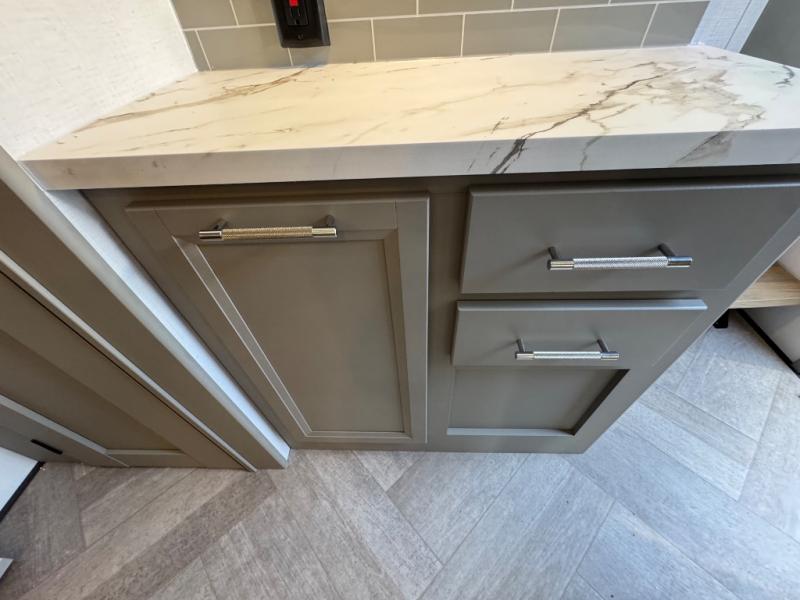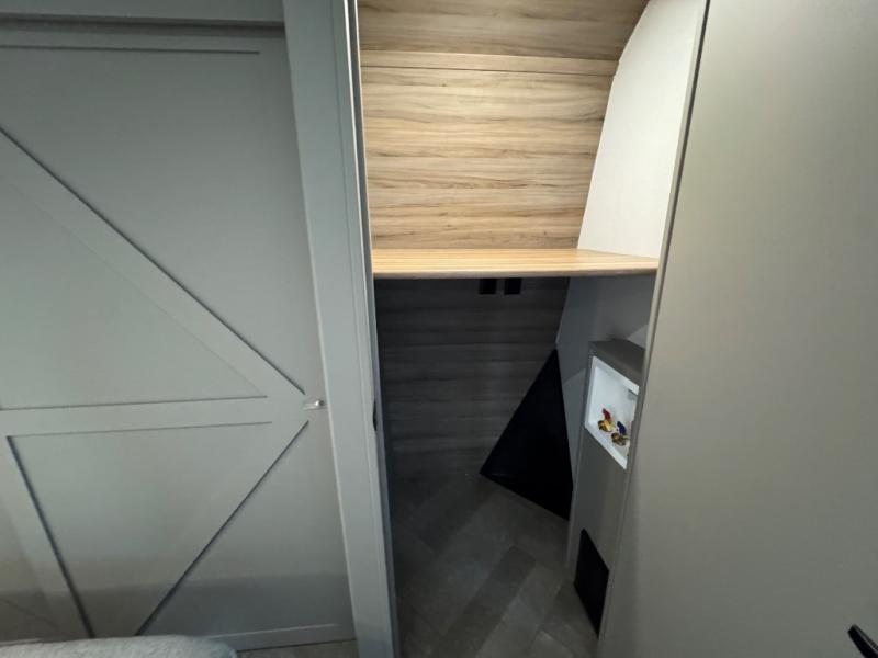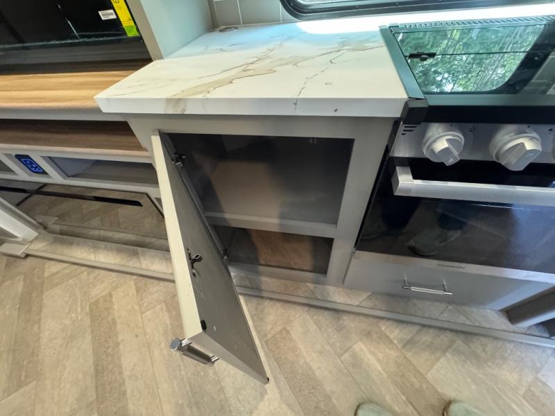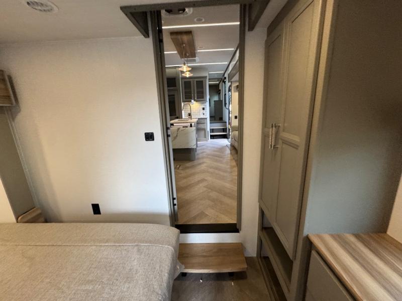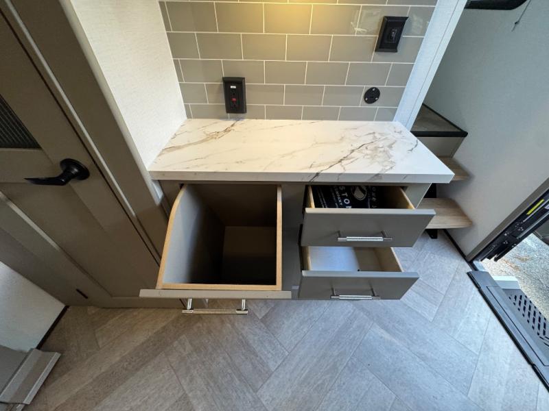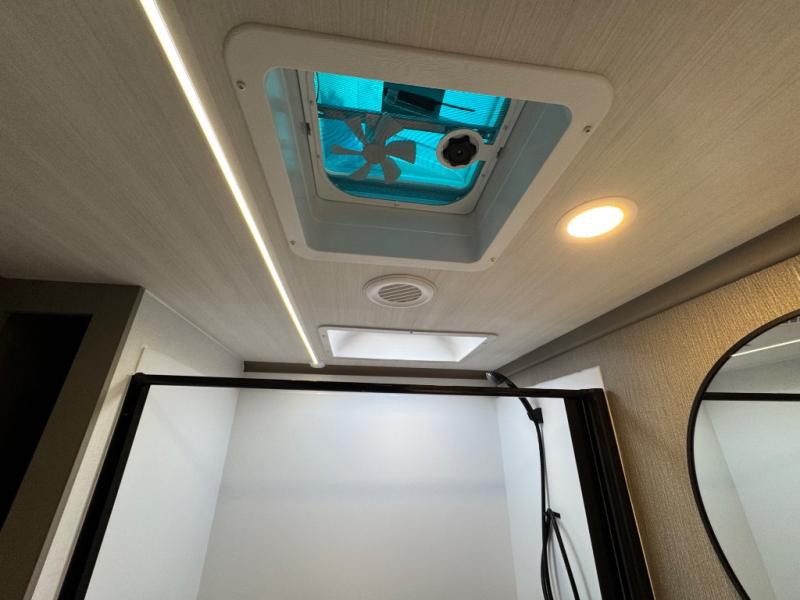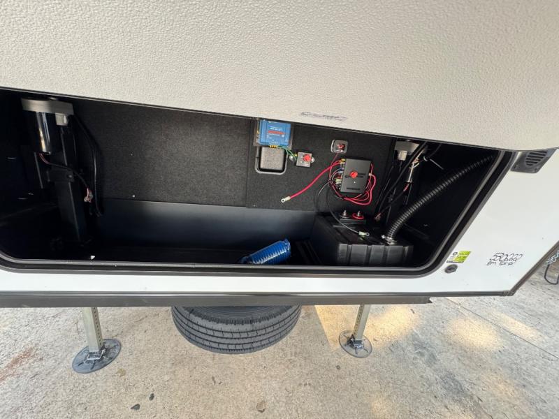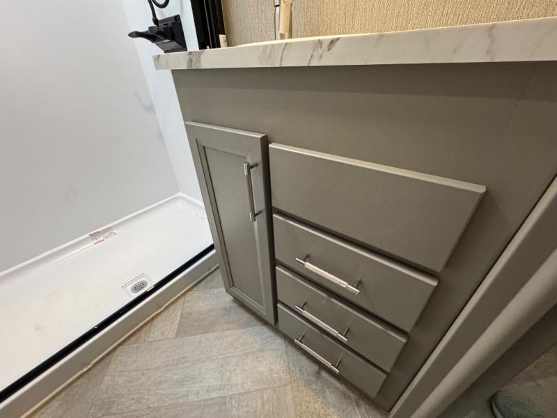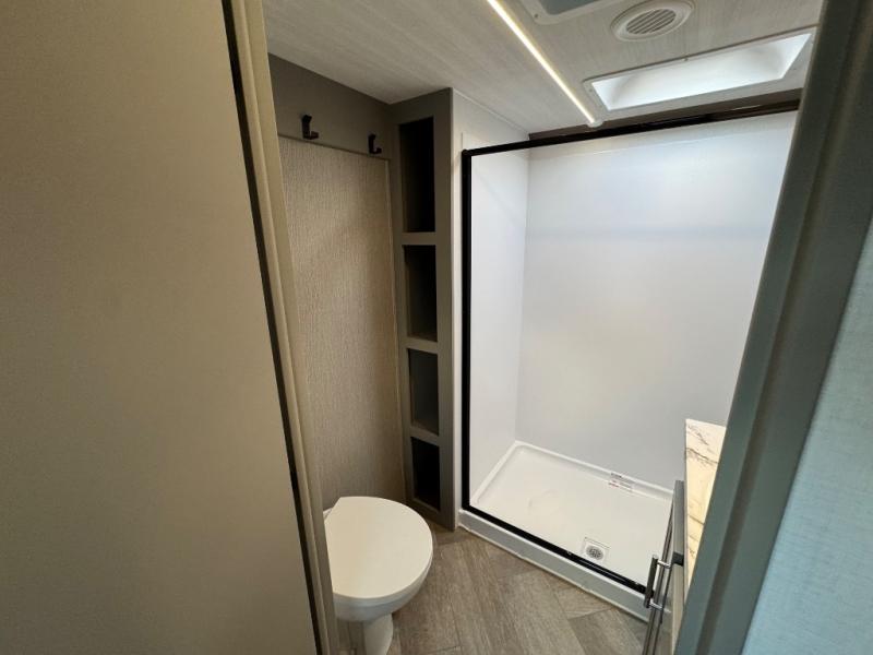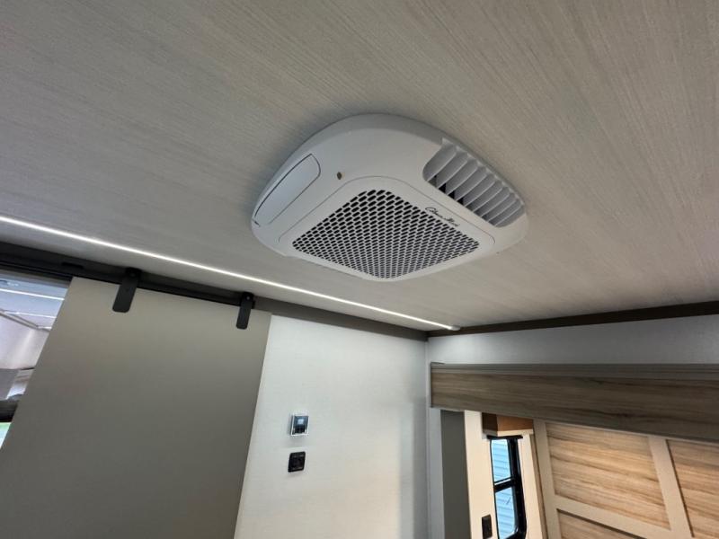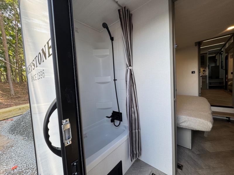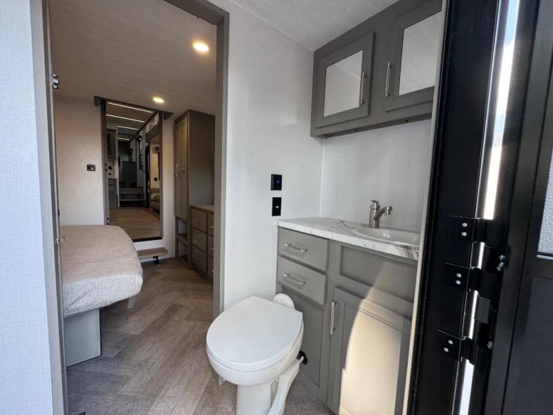 The Sprinter fifth wheels by Keystone feature spacious living areas, plenty of storage, and outstanding towability. Each unit is constructed with 2" aluminum framed and laminated sidewalls, a fully walkable roof, and dual layer insulation to help extend your camping season. The heated pass-through storage includes lockable slam latch baggage doors so you can easily pack your gear, and the one-touch 4-point leveling system features return hookup memory to have you set up in no-time. Head inside to find Congoleum vinyl flooring, Thomas Payne luxury collection furniture, residential style seamless marbled countertops, and an upgraded bedspread to name a few comforts. The Sprinter also includes a Girard tankless on-demand water heater, a central command center, plus a 30k BTU furnace and two A/C units to ensure your comfort!