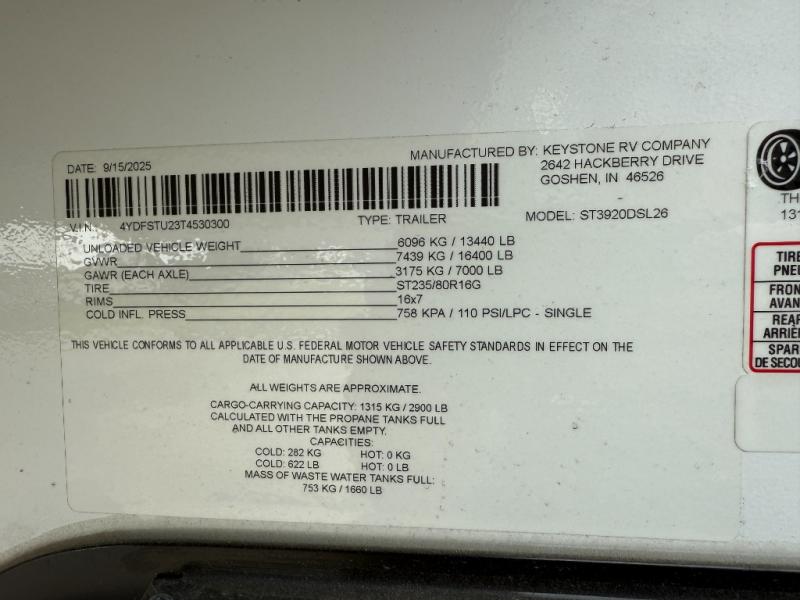 New 2026 Keystone RV Sprinter 3920DSL Fifth Wheel