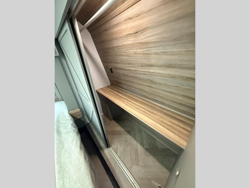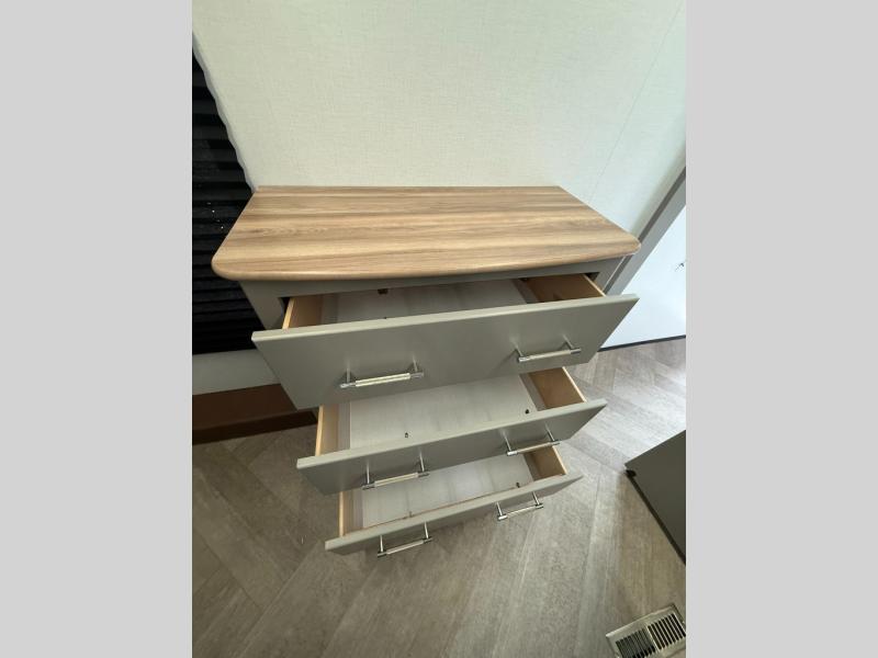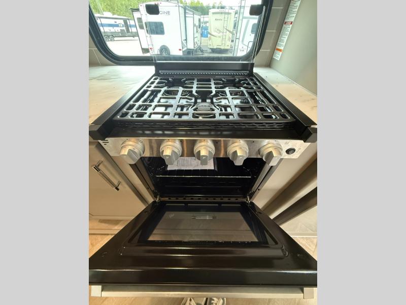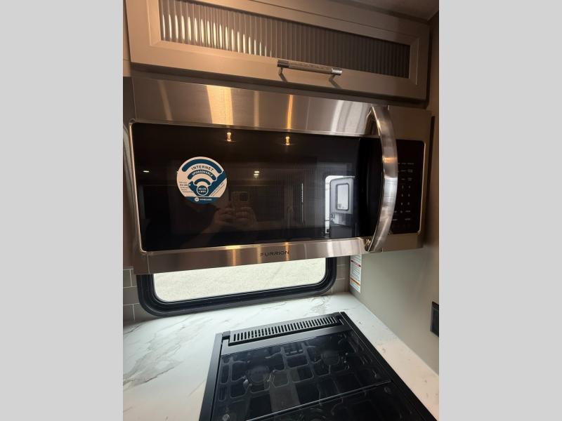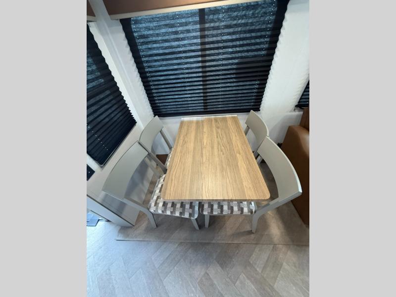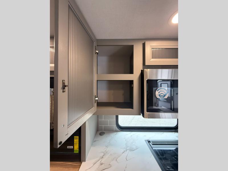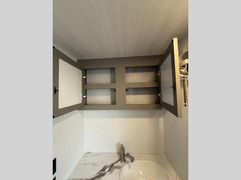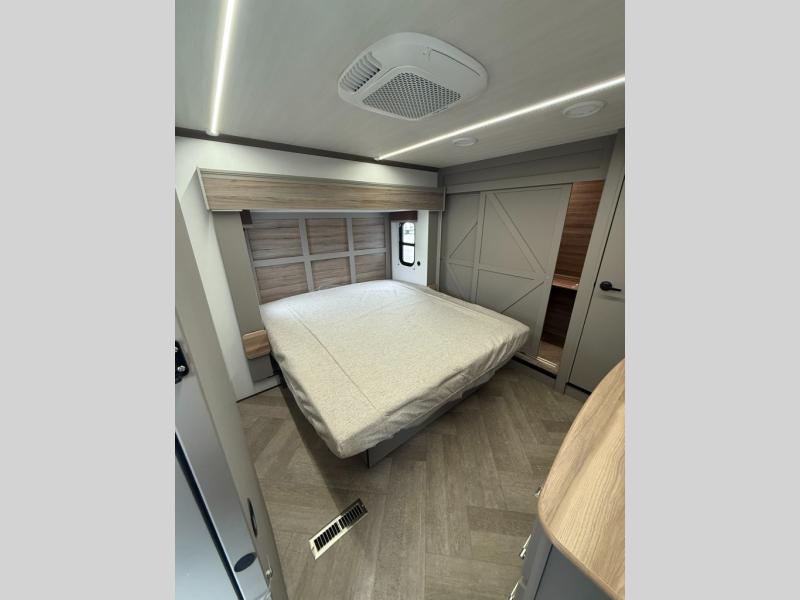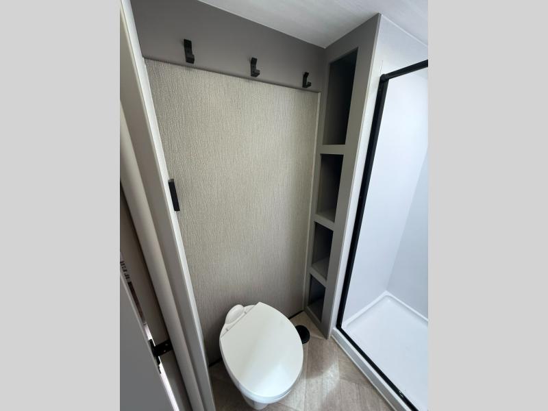 The Sprinter fifth wheels by Keystone feature spacious living areas, plenty of storage, and outstanding towability. Each unit is constructed with 2" aluminum framed and laminated sidewalls, a fully walkable roof, and dual layer insulation to help extend your camping season. The heated pass-through storage includes lockable slam latch baggage doors so you can easily pack your gear, and the one-touch 4-point leveling system features return hookup memory to have you set up in no-time. Head inside to find Congoleum vinyl flooring, Thomas Payne luxury collection furniture, residential style seamless marbled countertops, and an upgraded bedspread to name a few comforts. The Sprinter also includes a Girard tankless on-demand water heater, a central command center, plus a 30k BTU furnace and two A/C units to ensure your comfort!
