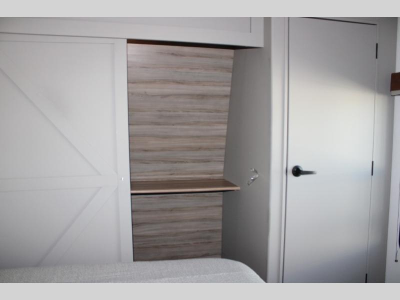 Perfect for families or friends traveling together, this unit boasts two separate suites—each with a king bed, wardrobes, and washer/dryer prep. Privacy meets comfort on both ends of the coach.