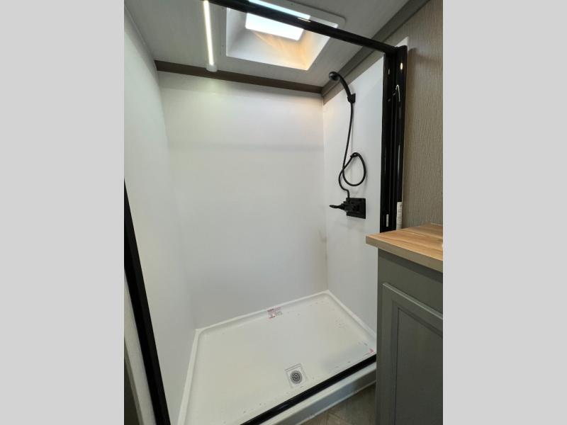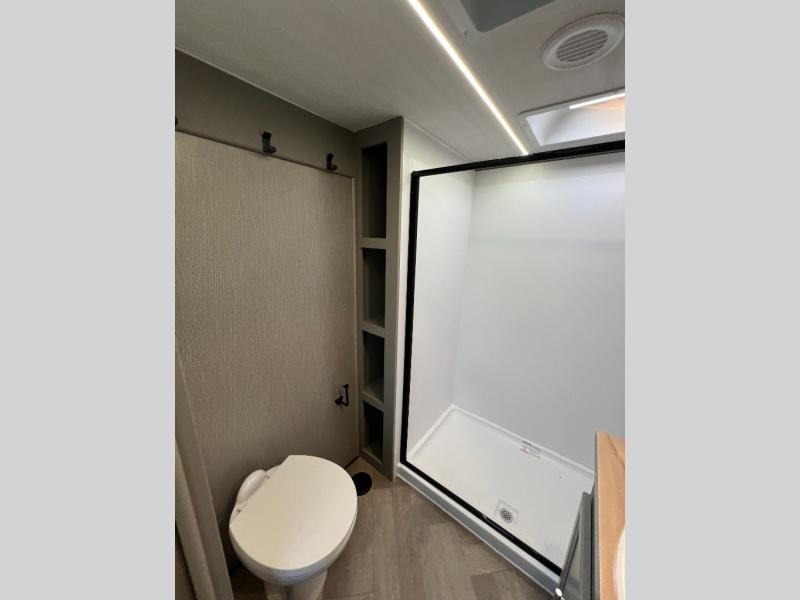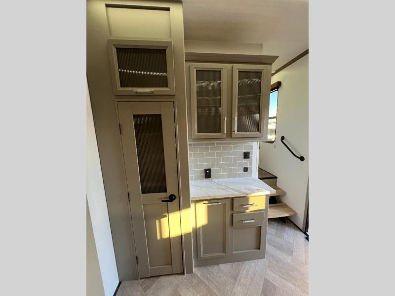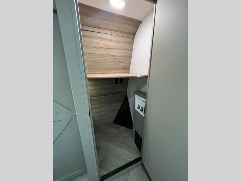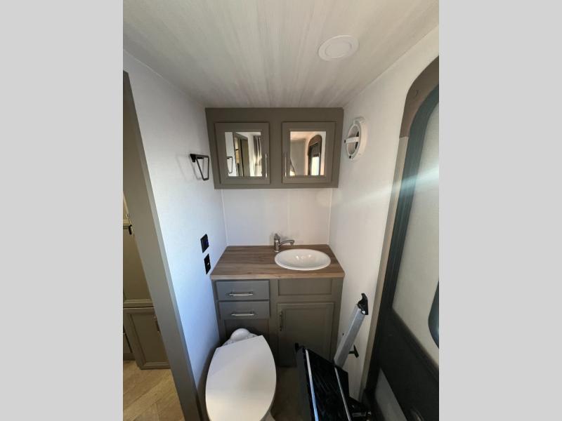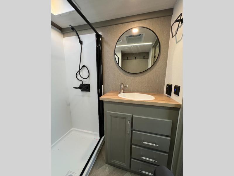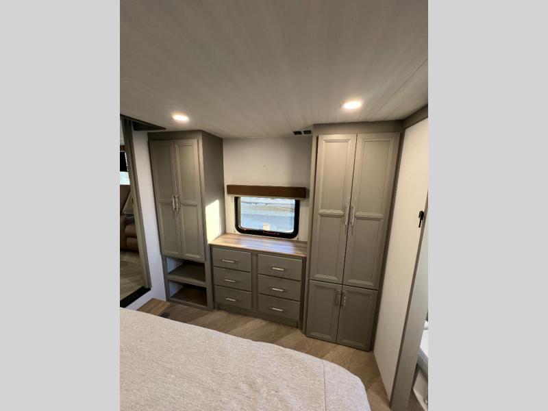 The Sprinter fifth wheels by Keystone feature spacious living areas, plenty of storage, and outstanding towability. Each unit is constructed with 2" aluminum framed and laminated sidewalls, a fully walkable roof, and dual layer insulation to help extend your camping season. The heated pass-through storage includes lockable slam latch baggage doors so you can easily pack your gear, and the one-touch 4-point leveling system features return hookup memory to have you set up in no-time. Head inside to find Congoleum vinyl flooring, Thomas Payne luxury collection furniture, residential style seamless marbled countertops, and an upgraded bedspread to name a few comforts. The Sprinter also includes a Girard tankless on-demand water heater, a central command center, plus a 30k BTU furnace and two A/C units to ensure your comfort!