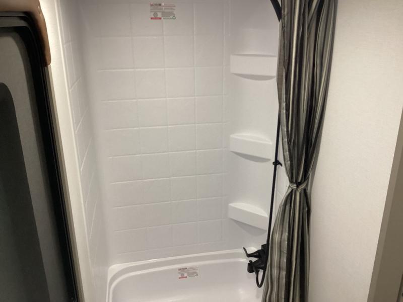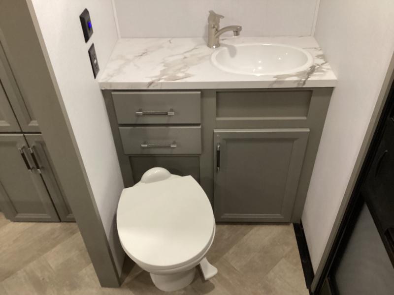 Two bedrooms and two full baths make this fifth wheel perfect for camping with friends and family!