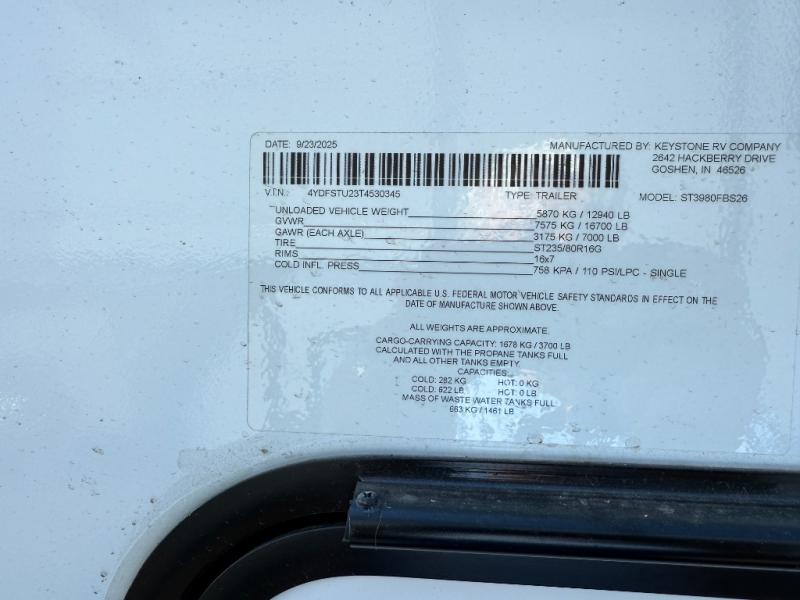 New 2026 Keystone RV Sprinter 3980FBS Fifth Wheel