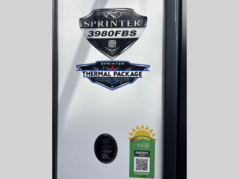 Experience luxury, space, and thoughtful design on every journey with the New Keystone Sprinter 3980FBS Fifth Wheel — a premium RV that delivers residential comfort, smart functionality, and adventure-ready capability for travelers who want more from life on the road. Whether you’re planning extended stays, full-time RV living, or family vacations, the Sprinter 3980FBS offers an unmatched combination of comfort and versatility.