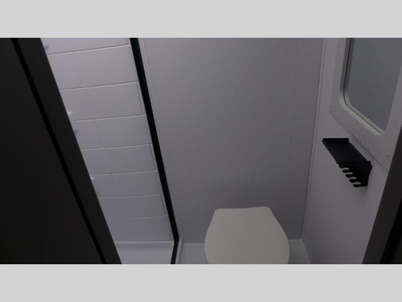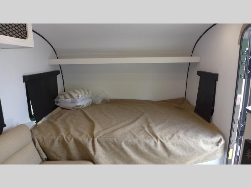 Once you step inside this compact travel trailer, you’re immediately welcomed by a cozy 50" x 80" bed positioned at the front, perfect for a restful night's sleep. At the center, a versatile jack knife sofa provides additional seating and can be easily converted into extra sleeping space if needed. Toward the rear, the corner kitchen is fully equipped with everything you need, including a sleek stainless steel sink, a two-burner cooktop, and a 4-cubic-foot refrigerator ideal for preparing meals on the go. In the opposite rear corner, the bathroom features an upgraded Oxygenics Fury showerhead, delivering a more powerful and comfortable shower experience to complete this well-designed and efficient living space.