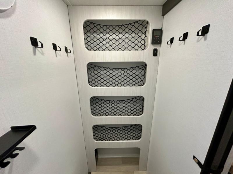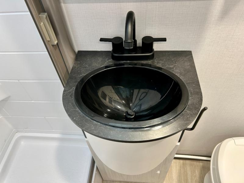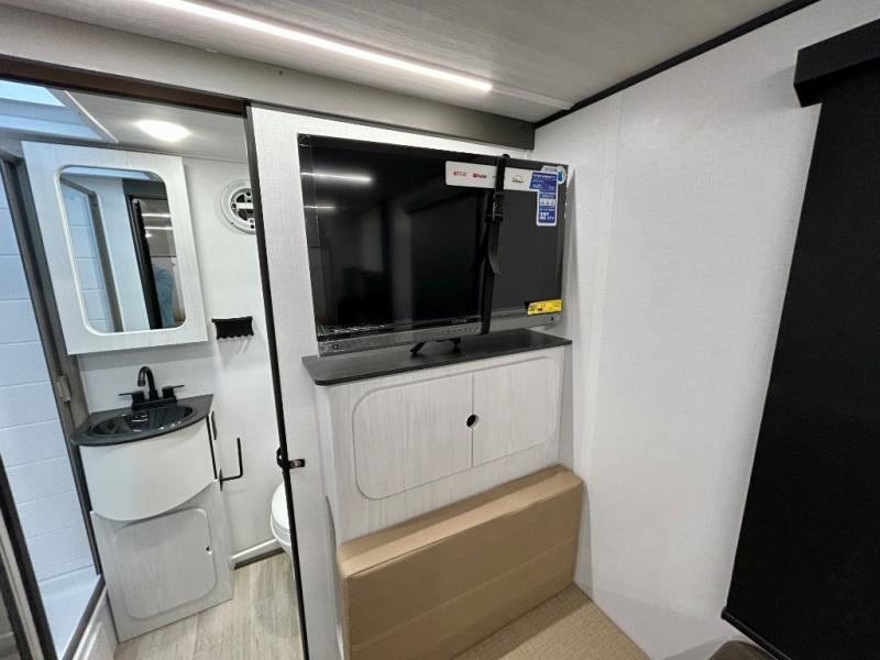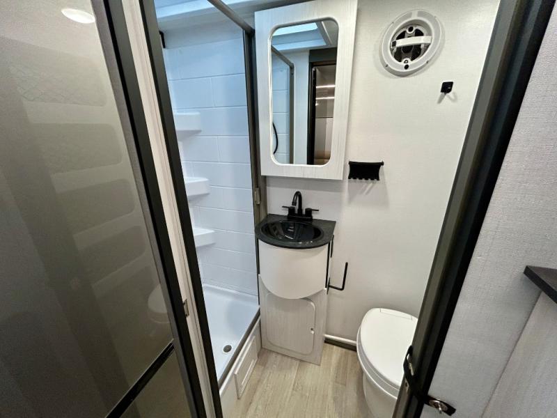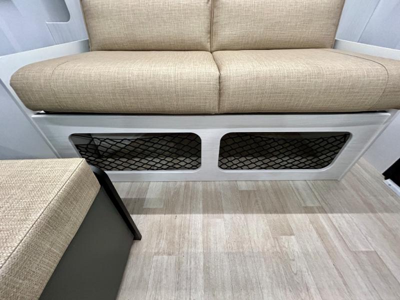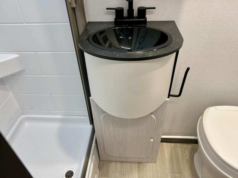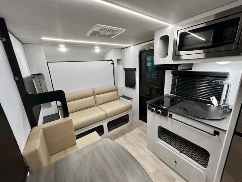 This single axle trailer is both cozy and versatile since there is a fold down sofa/Murphy bed up front! Now you can easily convert seating space into sleeping space, plus there are dual bedside closets to keep your things tidy. A two-burner cooktop and air fryer/convection microwave will let you cook meals each day, and a booth dinette provides a place to dine together. You can also choose to add the optional flip-up bunk above the dinette if you need more sleeping space. And don't overlook the full rear bath that will allow you to freshen up without having to leave your camper!