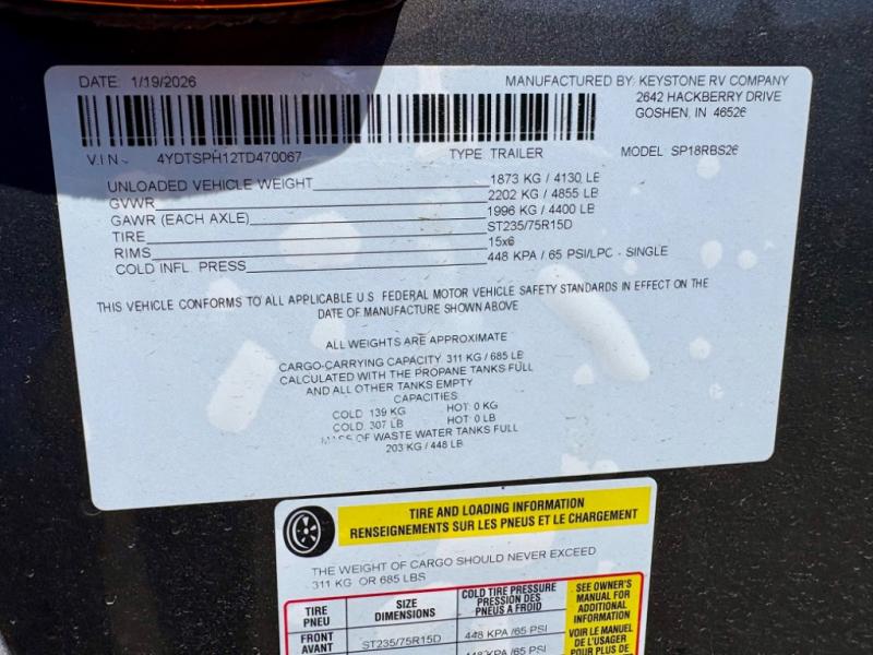 New 2026 Keystone RV Sprout 18RBS Travel Trailer