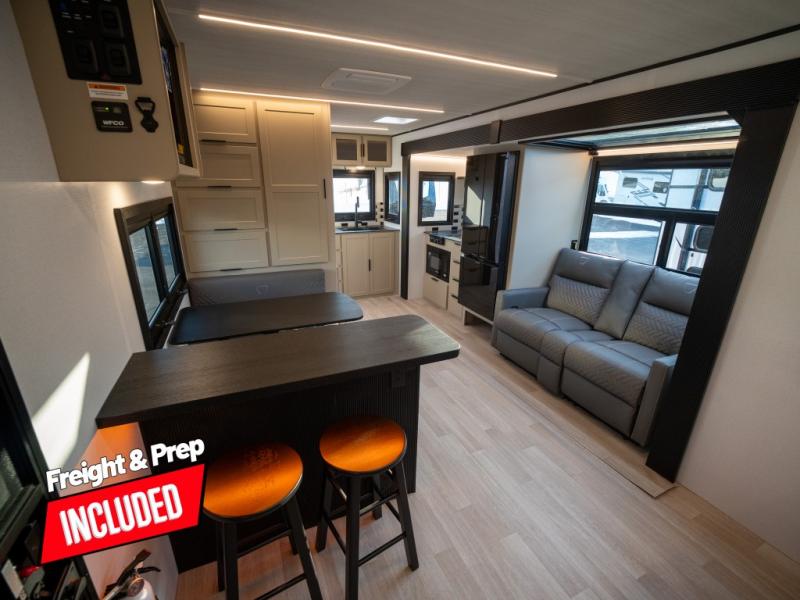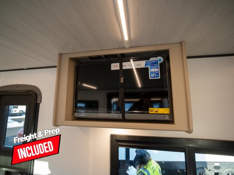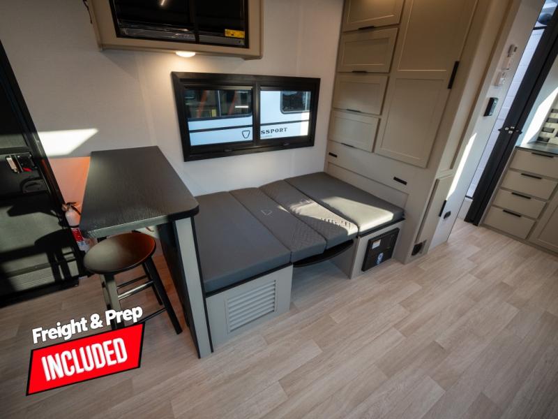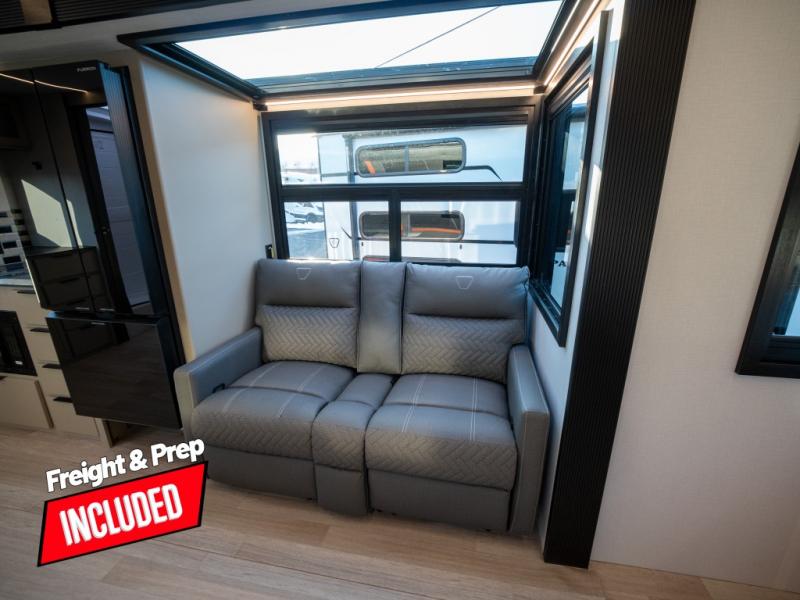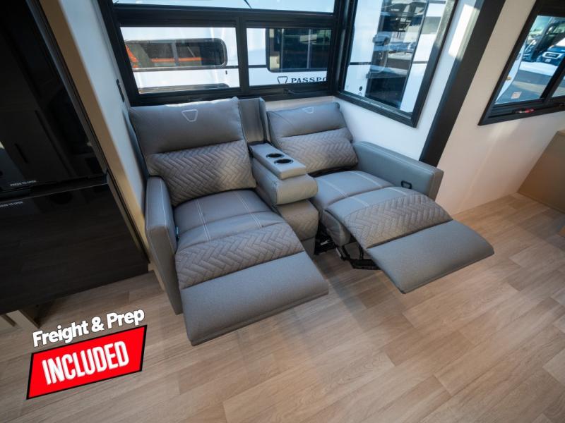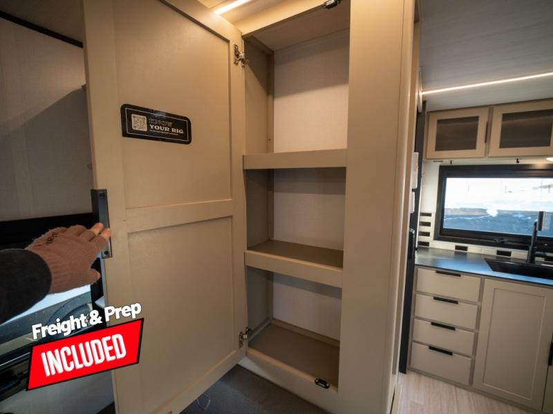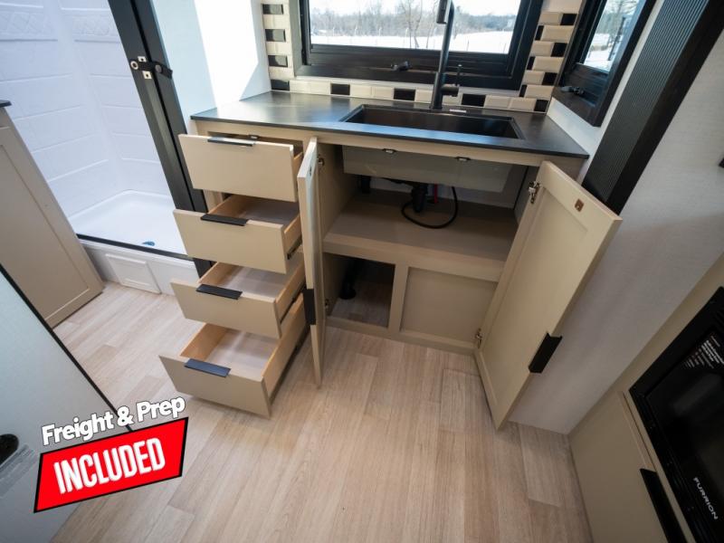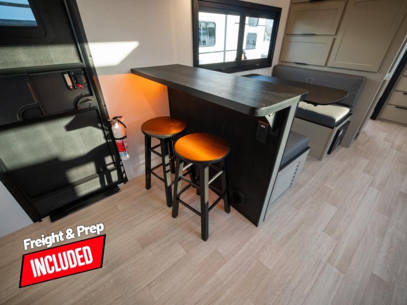 You and your spouse will love this travel trailer’s plush dream day bed with a comfortable bamboo mattress. Ample storage is provided by the wardrobes on each side of the bed, keeping your favorite outfits within easy reach. The booth dinette and theater seating provide perfect spots to enjoy meals, play games, or relax with loved ones. Plus, the layout is designed to maximize comfort and conversation. Whip up meals and snacks with ease and enjoy the convenience of having everything you need in one place since the kitchen is equipped with essentials, including a refrigerator, microwave, and pull-out pantry. Also, the full bathroom provides a convenient private space to get ready for the day.
