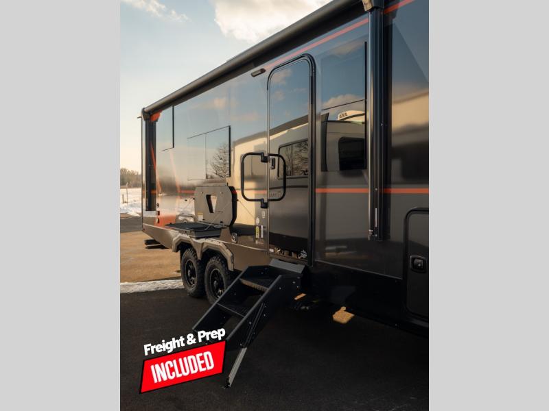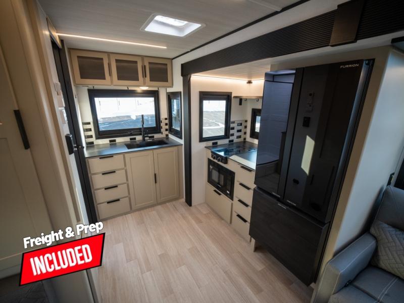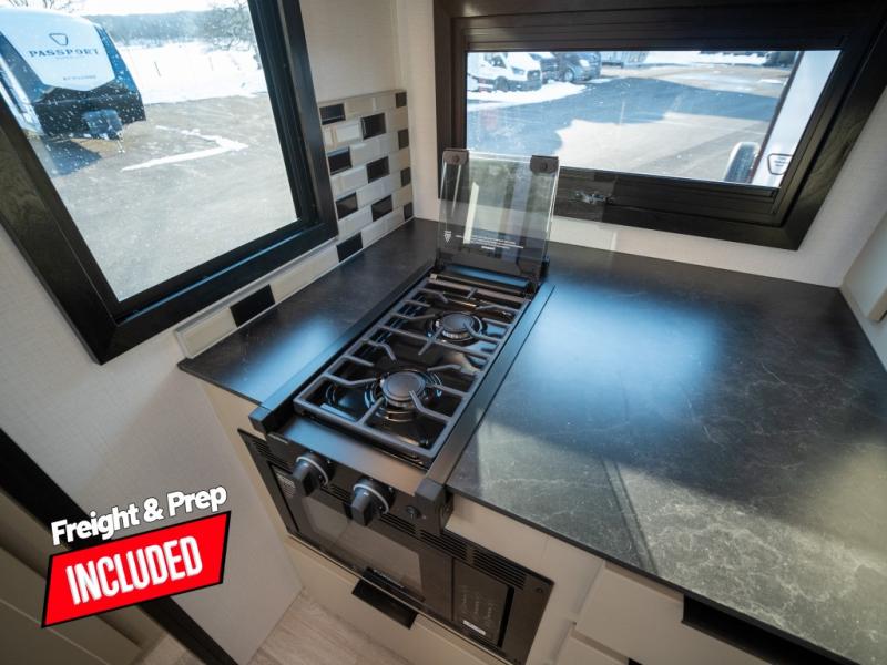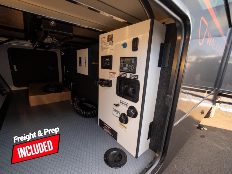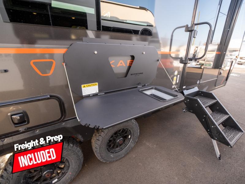 Each Keystone Walkabout travel trailer features a rugged automotive-grade aluminum exterior, designed to withstand the rigors of travel. The 11-gauge aluminum powder corner rails add strength and durability while keeping the trailer lightweight. It is known that storage is key to a comfortable trip. That's why these trailers are designed with maximum storage in mind, providing ample space for all your gear and equipment. You'll also feel like you're gliding down the road, not bouncing along, thanks to the Kurt Touring suspension that ensures a smooth ride, even on rough terrain. Further, the composite solid steps are durable and easy to clean, while the composite Thinscape countertop offers a stylish, low-maintenance surface for food prep and relaxation. Finally, with the 110-volt outlets throughout the trailer, you'll have plenty of power to keep your devices charged and your appliances running.