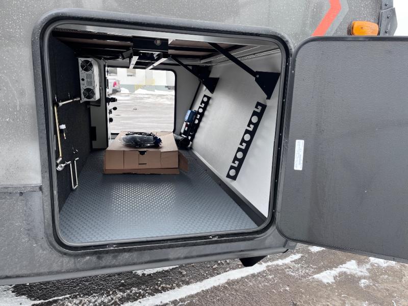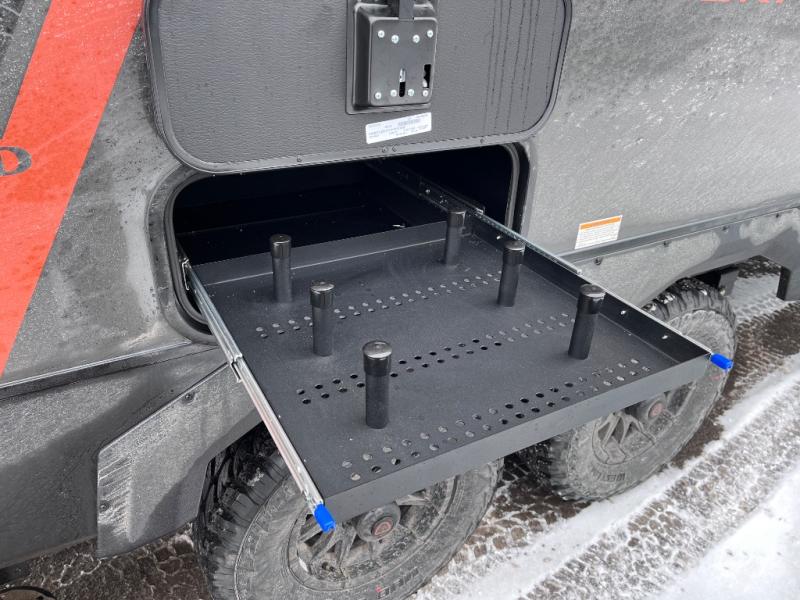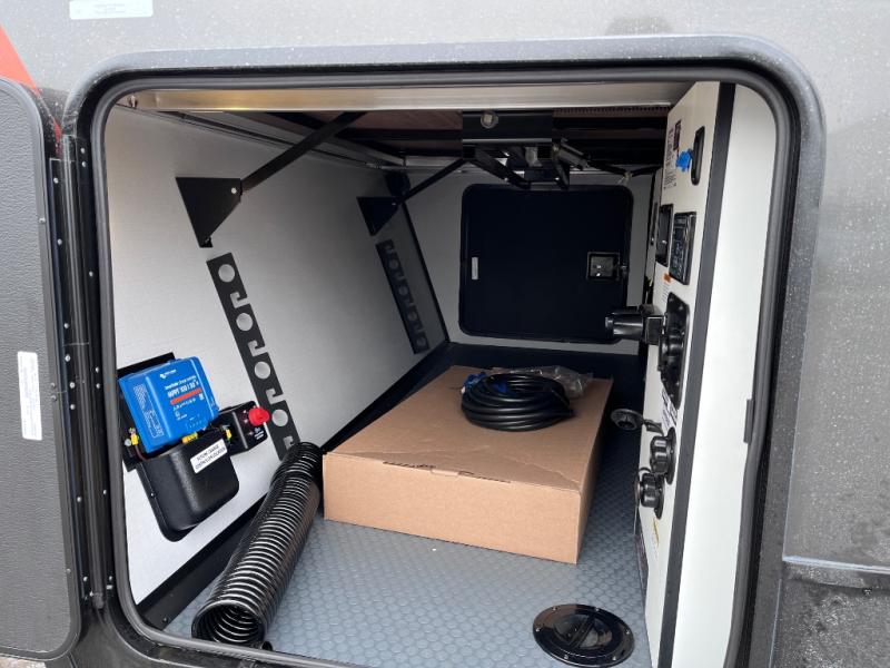 Each Keystone Walkabout travel trailer features a rugged automotive-grade aluminum exterior, designed to withstand the rigors of travel. The 11-gauge aluminum powder corner rails add strength and durability while keeping the trailer lightweight. It is known that storage is key to a comfortable trip. That's why these trailers are designed with maximum storage in mind, providing ample space for all your gear and equipment. You'll also feel like you're gliding down the road, not bouncing along, thanks to the Kurt Touring suspension that ensures a smooth ride, even on rough terrain. Further, the composite solid steps are durable and easy to clean, while the composite Thinscape countertop offers a stylish, low-maintenance surface for food prep and relaxation. Finally, with the 110-volt outlets throughout the trailer, you'll have plenty of power to keep your devices charged and your appliances running.