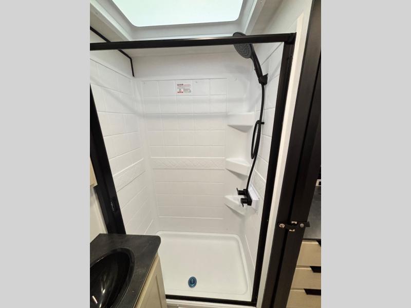 Each Keystone Walkabout travel trailer features a rugged automotive-grade aluminum exterior, designed to withstand the rigors of travel. The 11-gauge aluminum powder corner rails add strength and durability while keeping the trailer lightweight. It is known that storage is key to a comfortable trip. That's why these trailers are designed with maximum storage in mind, providing ample space for all your gear and equipment. You'll also feel like you're gliding down the road, not bouncing along, thanks to the Kurt Touring suspension that ensures a smooth ride, even on rough terrain. Further, the composite solid steps are durable and easy to clean, while the composite Thinscape countertop offers a stylish, low-maintenance surface for food prep and relaxation. Finally, with the 110-volt outlets throughout the trailer, you'll have plenty of power to keep your devices charged and your appliances running.