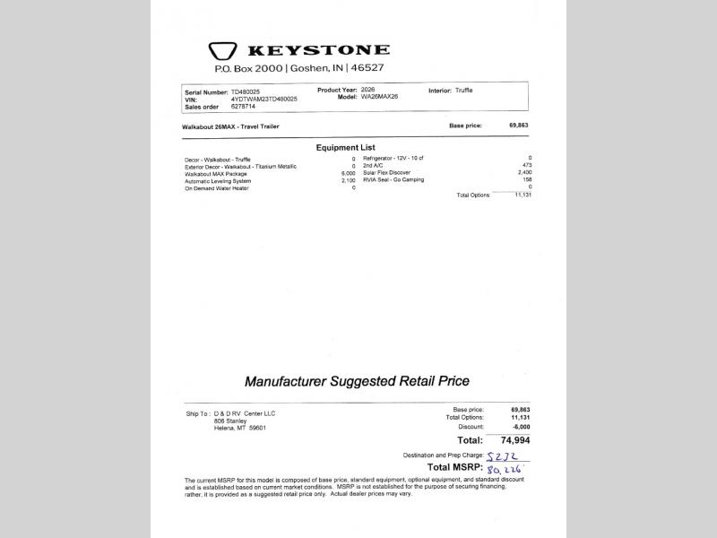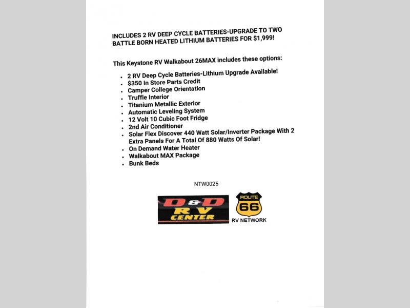 This Keystone RV Walkabout 26MAX includes these options: