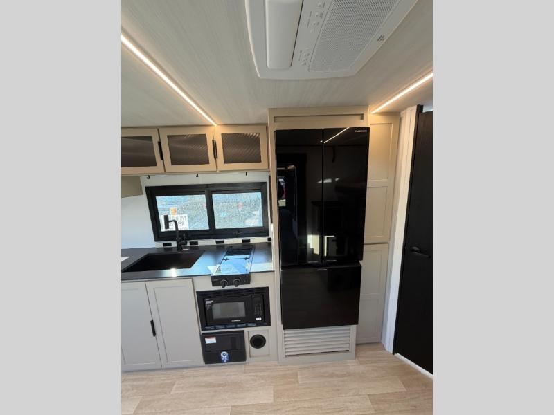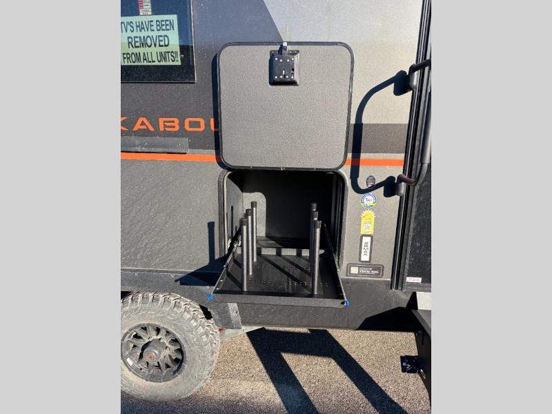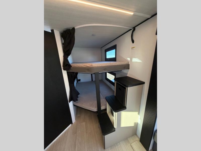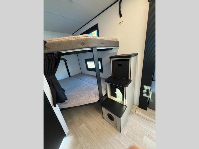 Each Keystone Walkabout travel trailer features a rugged automotive-grade aluminum exterior, designed to withstand the rigors of travel. The 11-gauge aluminum powder corner rails add strength and durability while keeping the trailer lightweight. It is known that storage is key to a comfortable trip. That's why these trailers are designed with maximum storage in mind, providing ample space for all your gear and equipment. You'll also feel like you're gliding down the road, not bouncing along, thanks to the Kurt Touring suspension that ensures a smooth ride, even on rough terrain. Further, the composite solid steps are durable and easy to clean, while the composite Thinscape countertop offers a stylish, low-maintenance surface for food prep and relaxation. Finally, with the 110-volt outlets throughout the trailer, you'll have plenty of power to keep your devices charged and your appliances running.