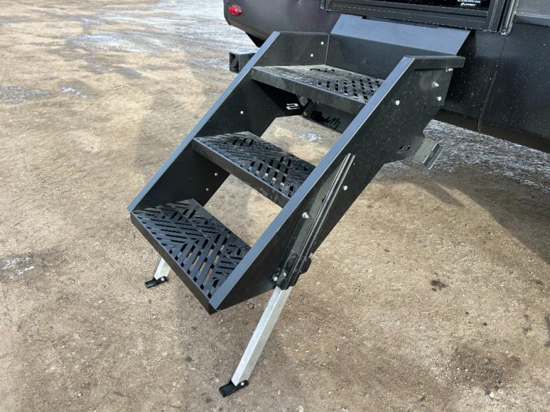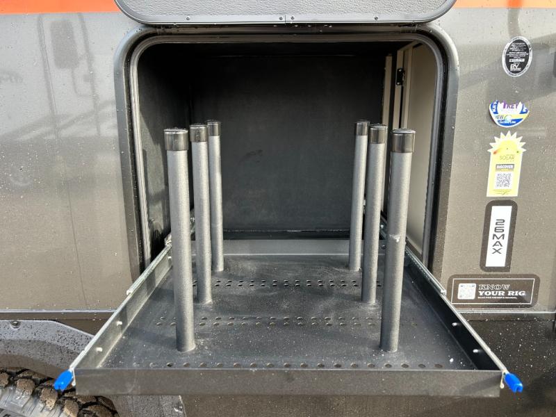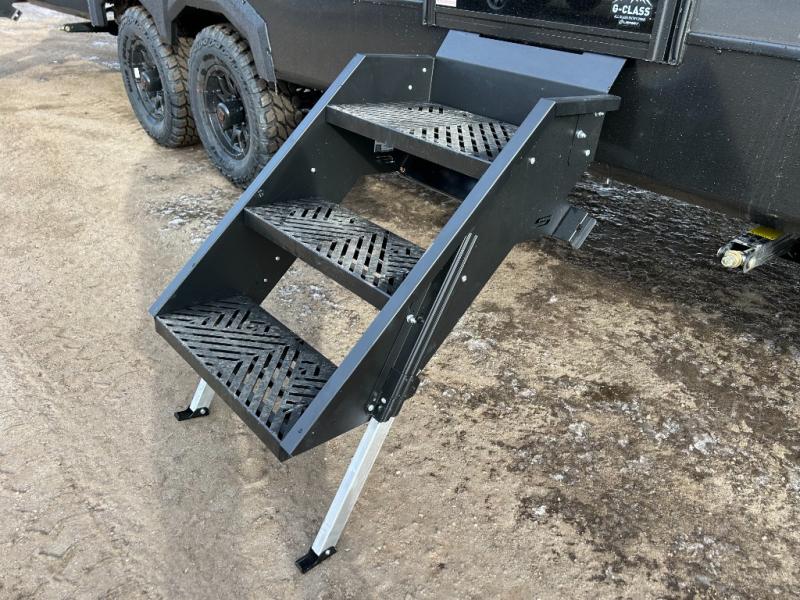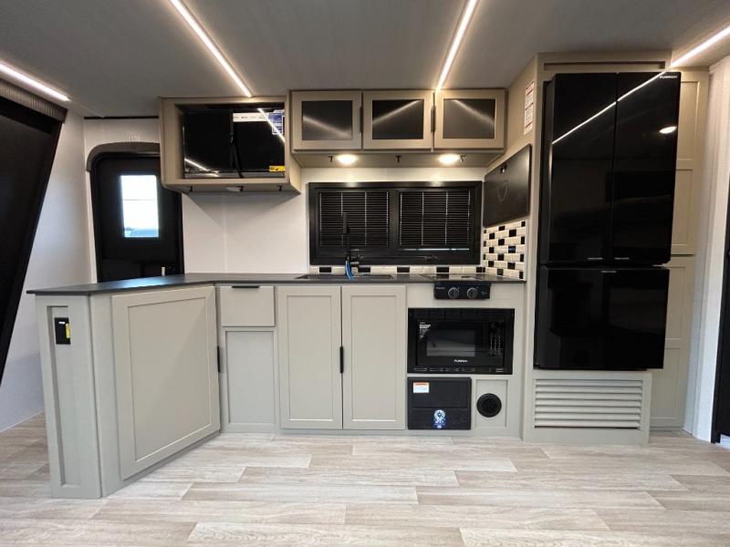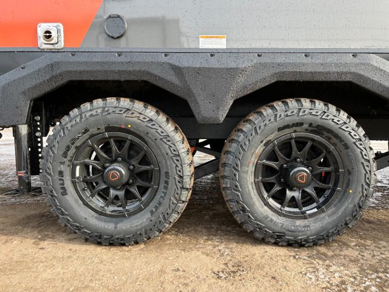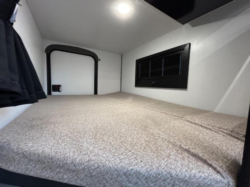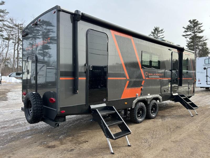 Each Keystone Walkabout travel trailer features a rugged automotive-grade aluminum exterior, designed to withstand the rigors of travel. The 11-gauge aluminum powder corner rails add strength and durability while keeping the trailer lightweight. It is known that storage is key to a comfortable trip. That's why these trailers are designed with maximum storage in mind, providing ample space for all your gear and equipment. You'll also feel like you're gliding down the road, not bouncing along, thanks to the Kurt Touring suspension that ensures a smooth ride, even on rough terrain. Further, the composite solid steps are durable and easy to clean, while the composite Thinscape countertop offers a stylish, low-maintenance surface for food prep and relaxation. Finally, with the 110-volt outlets throughout the trailer, you'll have plenty of power to keep your devices charged and your appliances running.