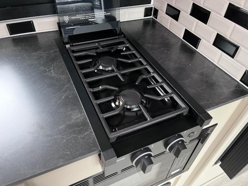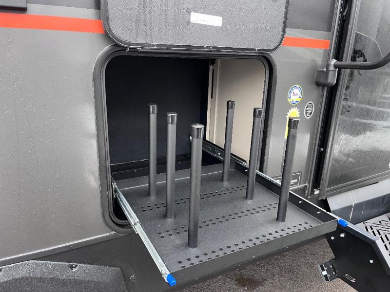 Each Keystone Walkabout travel trailer features a rugged automotive-grade aluminum exterior, designed to withstand the rigors of travel. The 11-gauge aluminum powder corner rails add strength and durability while keeping the trailer lightweight. It is known that storage is key to a comfortable trip. That's why these trailers are designed with maximum storage in mind, providing ample space for all your gear and equipment. You'll also feel like you're gliding down the road, not bouncing along, thanks to the Kurt Touring suspension that ensures a smooth ride, even on rough terrain. Further, the composite solid steps are durable and easy to clean, while the composite Thinscape countertop offers a stylish, low-maintenance surface for food prep and relaxation. Finally, with the 110-volt outlets throughout the trailer, you'll have plenty of power to keep your devices charged and your appliances running.