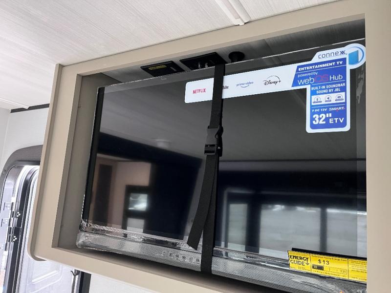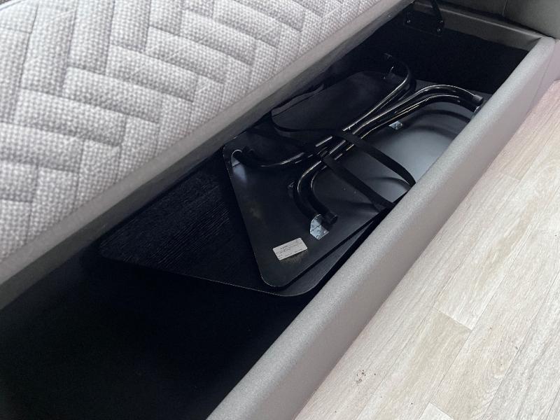 This trailer features double-size bunk beds, perfect for kids or adults, and a front bedroom with a queen bed, shelf, and wardrobes on each side. The living area is a hub of activity, with a super storage sofa that doubles as a comfortable seating area, and two tables that provide plenty of space for meals, games, or working on projects. The kitchen is well-equipped with a refrigerator, overhead cabinets, and a pantry ideal for storing your favorite seasonings. Plus, a 32" TV provides entertainment for the whole family, perfect for relaxing after a long day of exploring, and the full bathroom is a convenient and essential feature, providing a private space to freshen up after a long day.