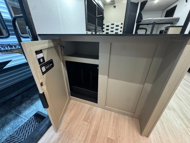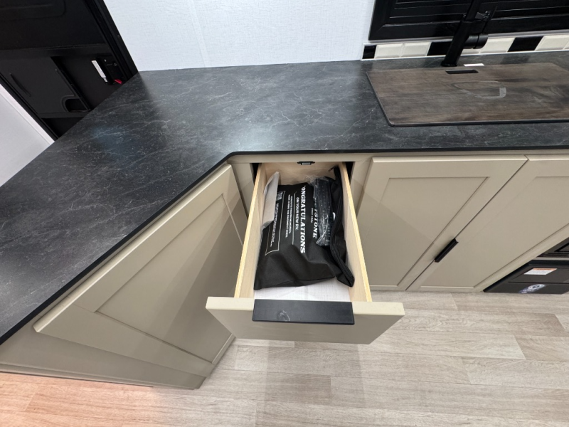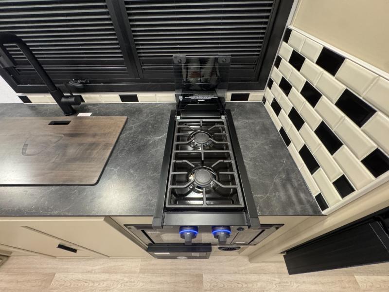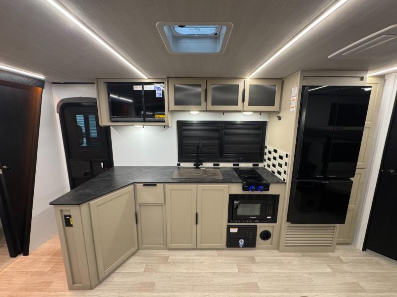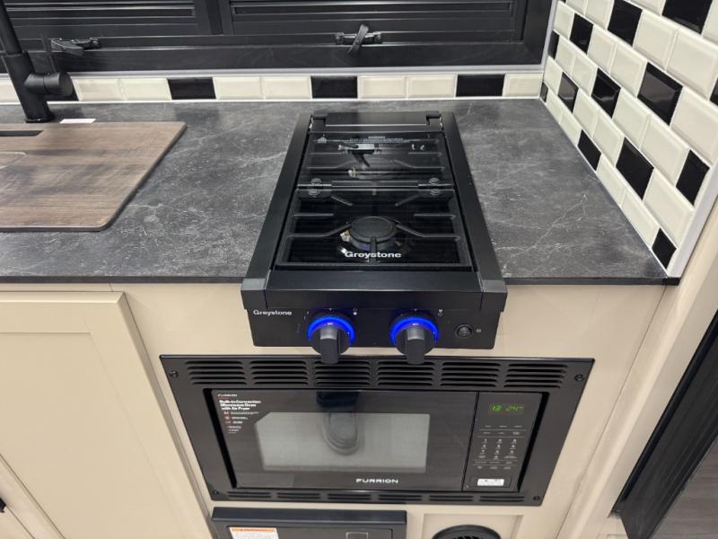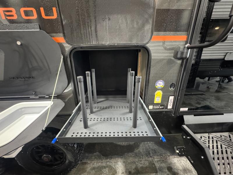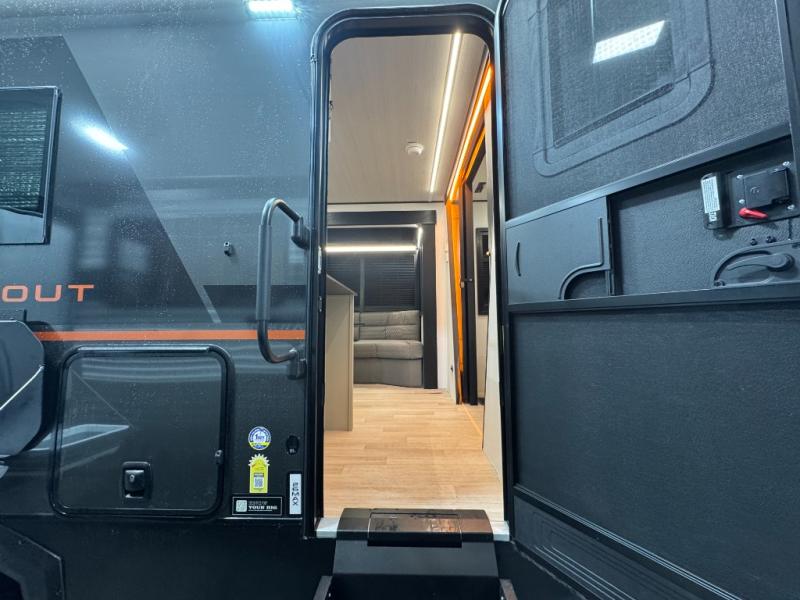 Each Keystone Walkabout travel trailer features a rugged automotive-grade aluminum exterior, designed to withstand the rigors of travel. The 11-gauge aluminum powder corner rails add strength and durability while keeping the trailer lightweight. It is known that storage is key to a comfortable trip. That's why these trailers are designed with maximum storage in mind, providing ample space for all your gear and equipment. You'll also feel like you're gliding down the road, not bouncing along, thanks to the Kurt Touring suspension that ensures a smooth ride, even on rough terrain. Further, the composite solid steps are durable and easy to clean, while the composite Thinscape countertop offers a stylish, low-maintenance surface for food prep and relaxation. Finally, with the 110-volt outlets throughout the trailer, you'll have plenty of power to keep your devices charged and your appliances running.