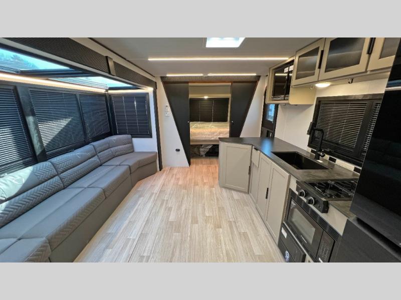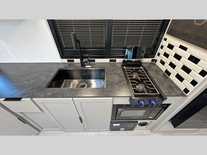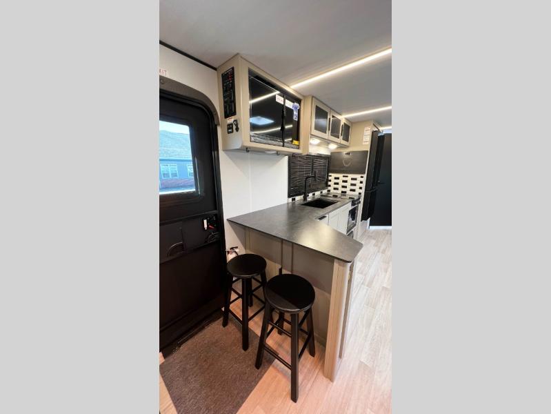 Each Keystone Walkabout travel trailer features a rugged automotive-grade aluminum exterior, designed to withstand the rigors of travel. The 11-gauge aluminum powder corner rails add strength and durability while keeping the trailer lightweight. It is known that storage is key to a comfortable trip. That's why these trailers are designed with maximum storage in mind, providing ample space for all your gear and equipment. You'll also feel like you're gliding down the road, not bouncing along, thanks to the Kurt Touring suspension that ensures a smooth ride, even on rough terrain. Further, the composite solid steps are durable and easy to clean, while the composite Thinscape countertop offers a stylish, low-maintenance surface for food prep and relaxation. Finally, with the 110-volt outlets throughout the trailer, you'll have plenty of power to keep your devices charged and your appliances running.