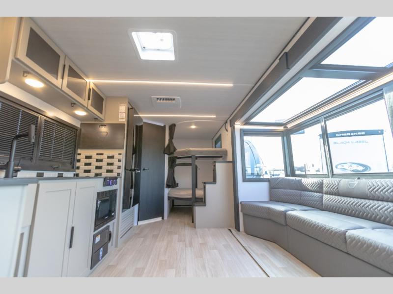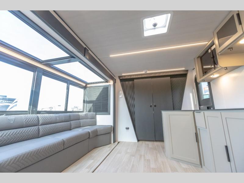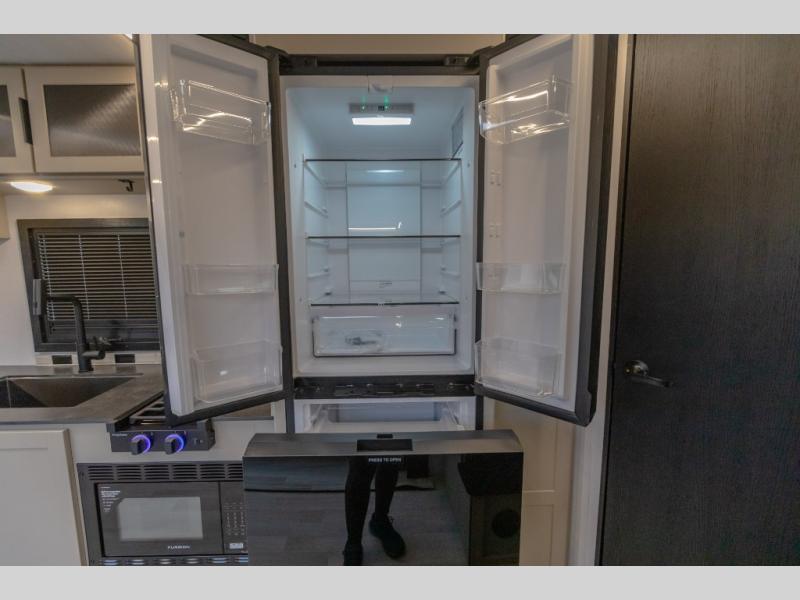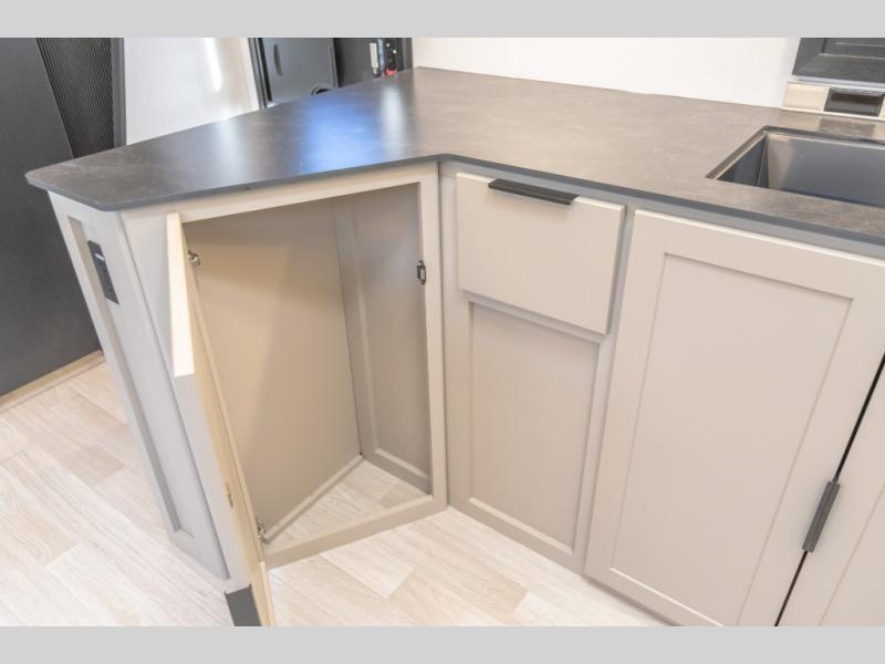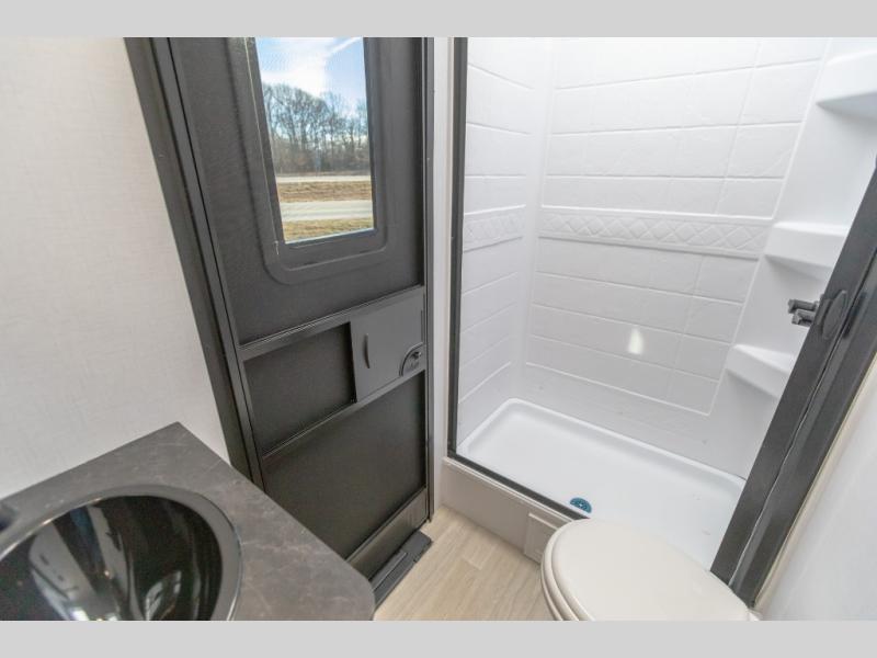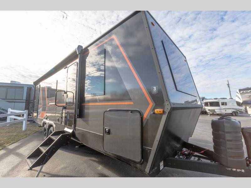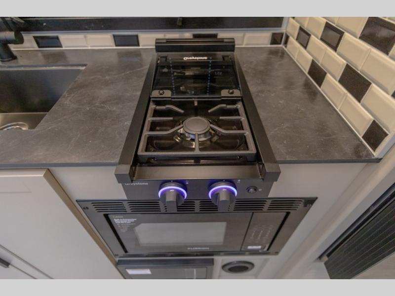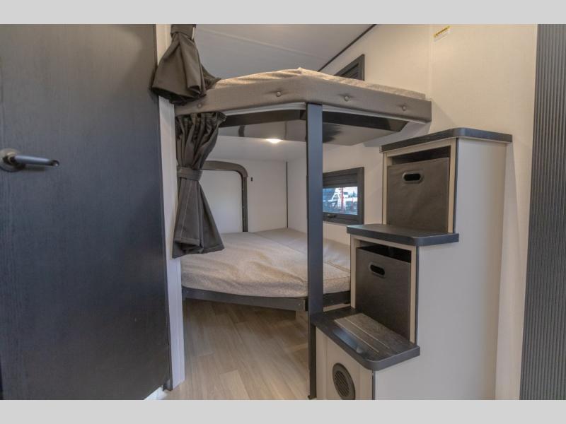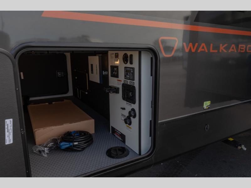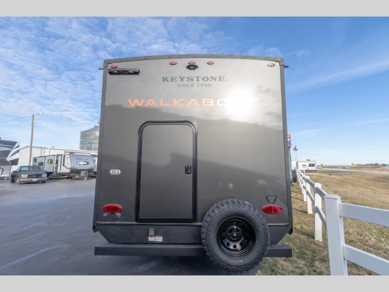 Each Keystone Walkabout travel trailer features a rugged automotive-grade aluminum exterior, designed to withstand the rigors of travel. The 11-gauge aluminum powder corner rails add strength and durability while keeping the trailer lightweight. It is known that storage is key to a comfortable trip. That's why these trailers are designed with maximum storage in mind, providing ample space for all your gear and equipment. You'll also feel like you're gliding down the road, not bouncing along, thanks to the Kurt Touring suspension that ensures a smooth ride, even on rough terrain. Further, the composite solid steps are durable and easy to clean, while the composite Thinscape countertop offers a stylish, low-maintenance surface for food prep and relaxation. Finally, with the 110-volt outlets throughout the trailer, you'll have plenty of power to keep your devices charged and your appliances running.