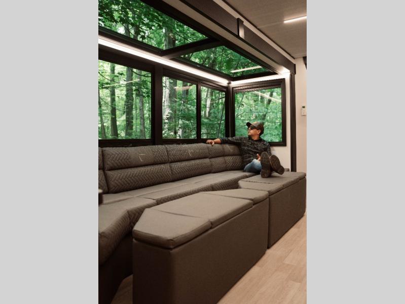 Each Keystone Walkabout travel trailer features a rugged automotive-grade aluminum exterior, designed to withstand the rigors of travel. The 11-gauge aluminum powder corner rails add strength and durability while keeping the trailer lightweight. It is known that storage is key to a comfortable trip. That's why these trailers are designed with maximum storage in mind, providing ample space for all your gear and equipment. You'll also feel like you're gliding down the road, not bouncing along, thanks to the Kurt Touring suspension that ensures a smooth ride, even on rough terrain. Further, the composite solid steps are durable and easy to clean, while the composite Thinscape countertop offers a stylish, low-maintenance surface for food prep and relaxation. Finally, with the 110-volt outlets throughout the trailer, you'll have plenty of power to keep your devices charged and your appliances running.