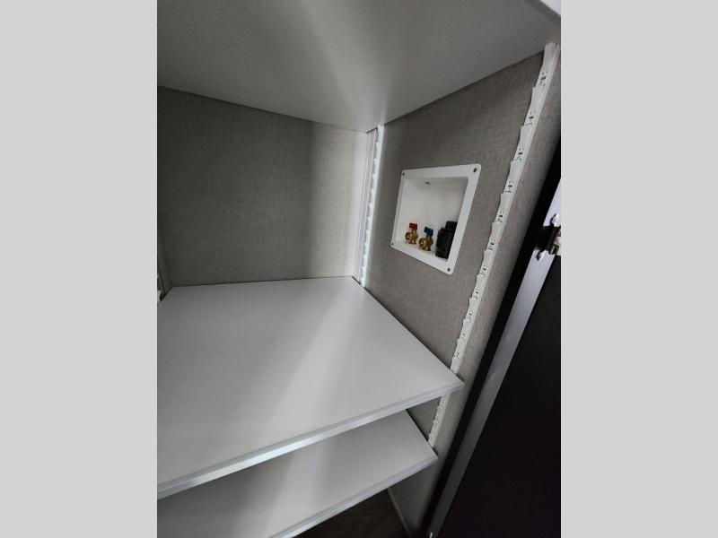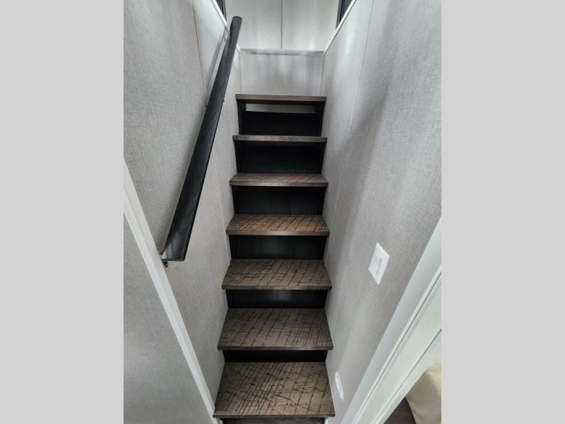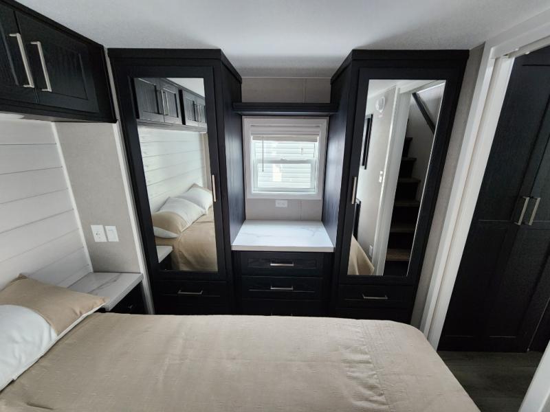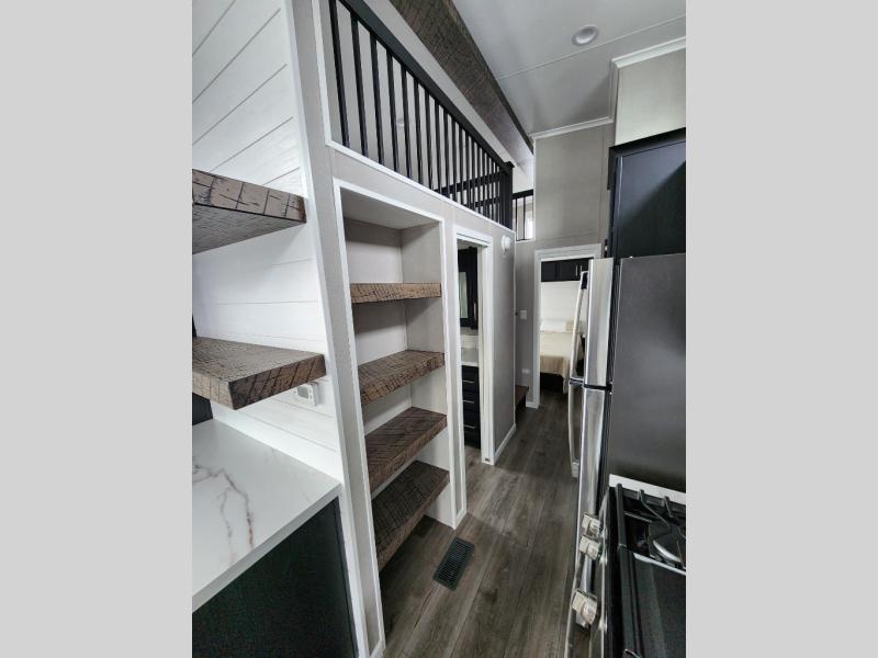 Whether it's a beachside retreat or a mountainside getaway, this Island Series park model will be beneficial for all! It provides you with a rear private bedroom that you can use each night for sleeping, and there is more space available for sleeping up in the loft. You can access the loft by using the set of open stairs. There is a very large pantry in the kitchen that will help you store all sorts of foods for your trips, and the 18-cubic foot refrigerator can help you store food that needs to be kept cold. The bathroom has a 54" shower, so you won't be at a loss for space while getting clean, and the linen closet can store your towels so that they are readily available each time you shower.