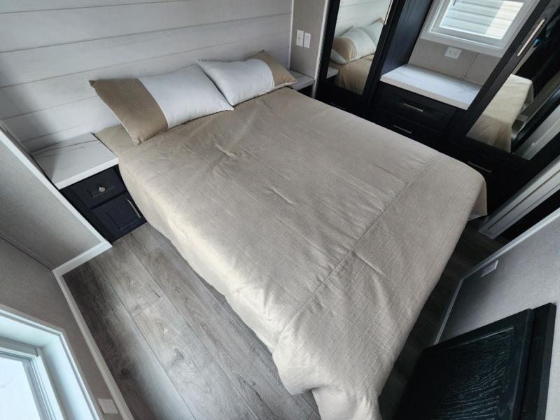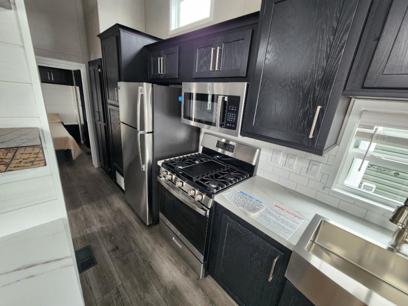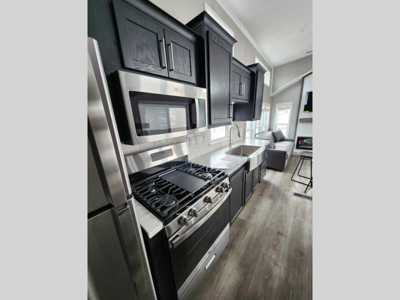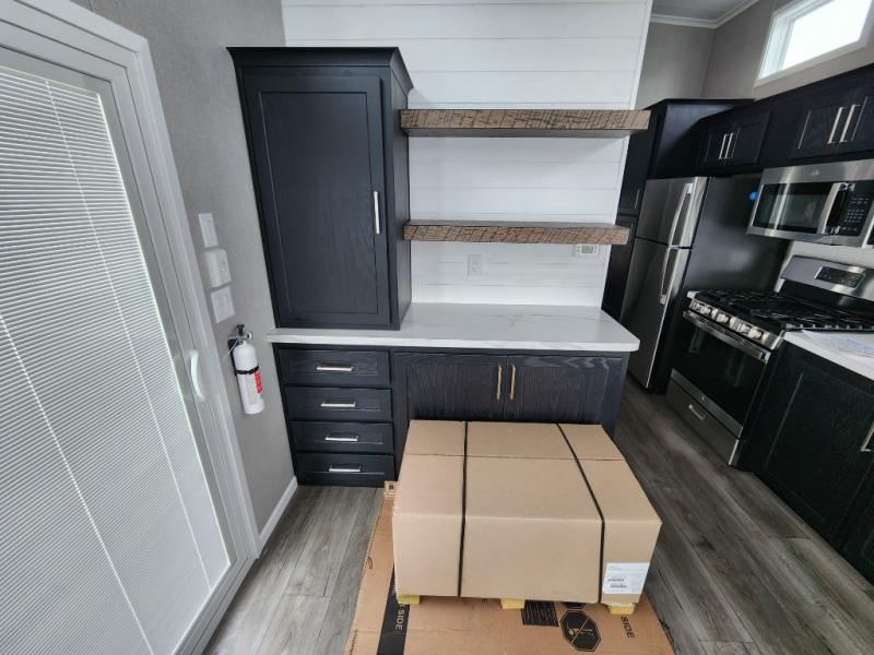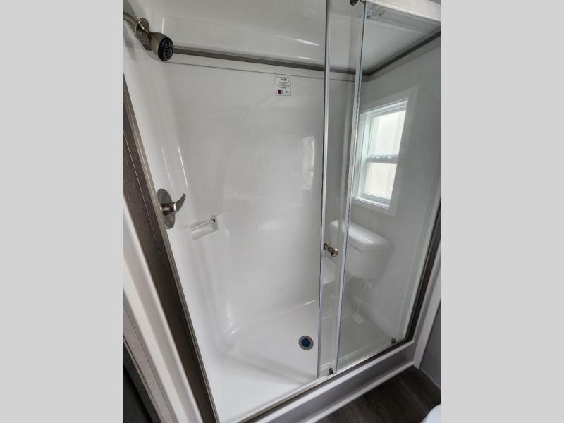 Keep your residential lifestyle while on vacation with the Kropf Industries Island Series park model! These units have been constructed with a durable laminate and self-edge countertops provide a sleek, high-end look that's both stylish and practical. The 54" one-piece fiberglass shower is a stunning centerpiece, its seamless design makes cleaning a breeze, and its generous size provides ample space to unwind, also, the stone/tile backsplash brings a sense of luxury and elegance to your space, adding a decorative touch that's both stylish and functional. To complete your dream space, the upgrade insulation helps ensure a comfortable ambiance.