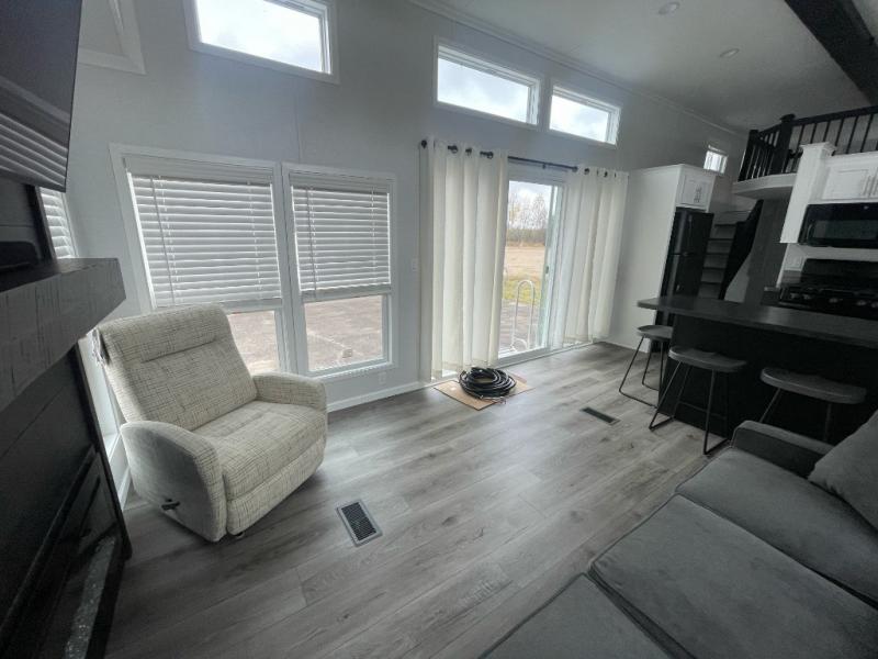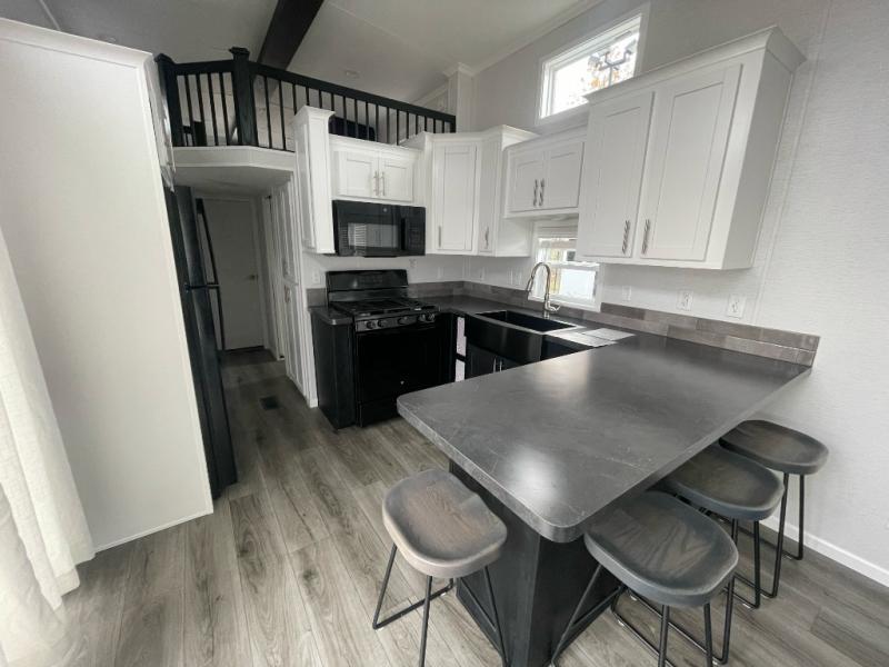 If you are looking to get away, take this Island Series park model out to your designated spot! You will be able to see the outside scenery through the patio door while sitting inside at the island with bar stools. The 18-cubic foot refrigerator will allow you to bring all sorts of goodies, and the ceiling fan in the living area will cool you down when you need a breeze. Watch the 39" LCD HDTV when your favorite show is on, and head back to the private bedroom to rest each night. If you've brought your kids along, they are sure to love spending time in the loft that has open stairs leading up to it.